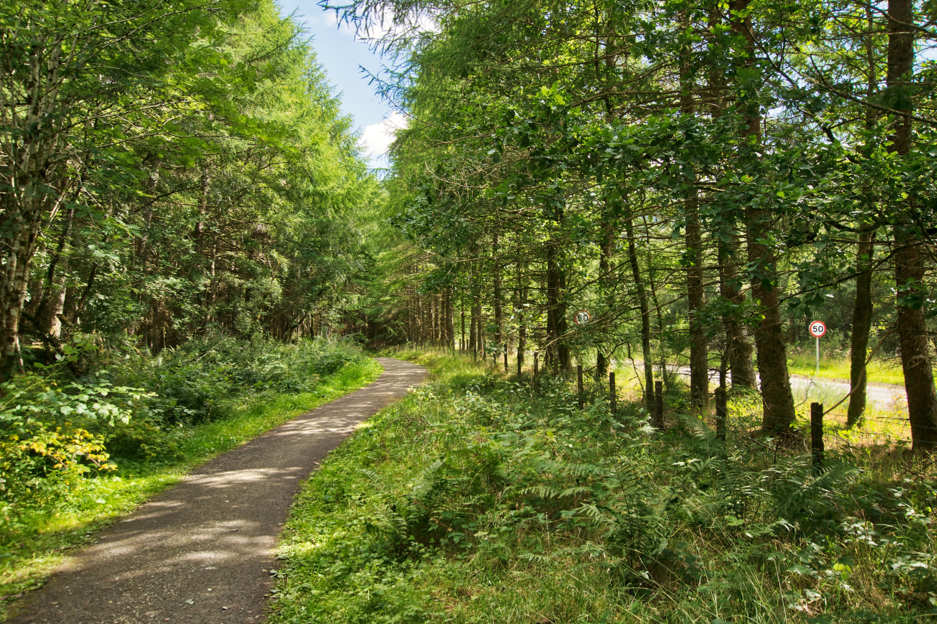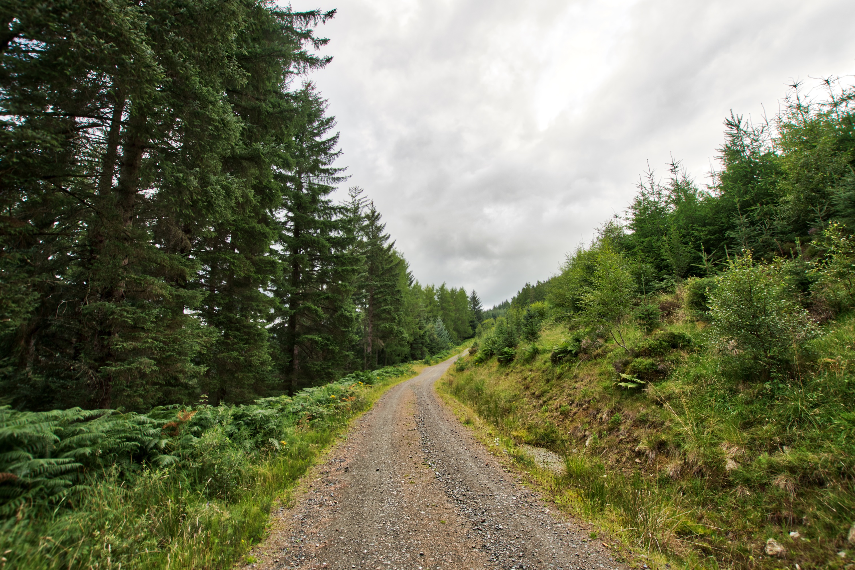 Der Rob Roy Way verlief direkt neben dem Bed & Breakfast zunächst den Hügel hoch und dann in den Wald. Auf dem ersten Stück des Weges verlief der Rob Roy Way heute nicht auf der Cycle Route No. 7, was ganz angenehm war, denn so liefen wir zunächst auf einem schmalen Trampelpfad durch den Wald.