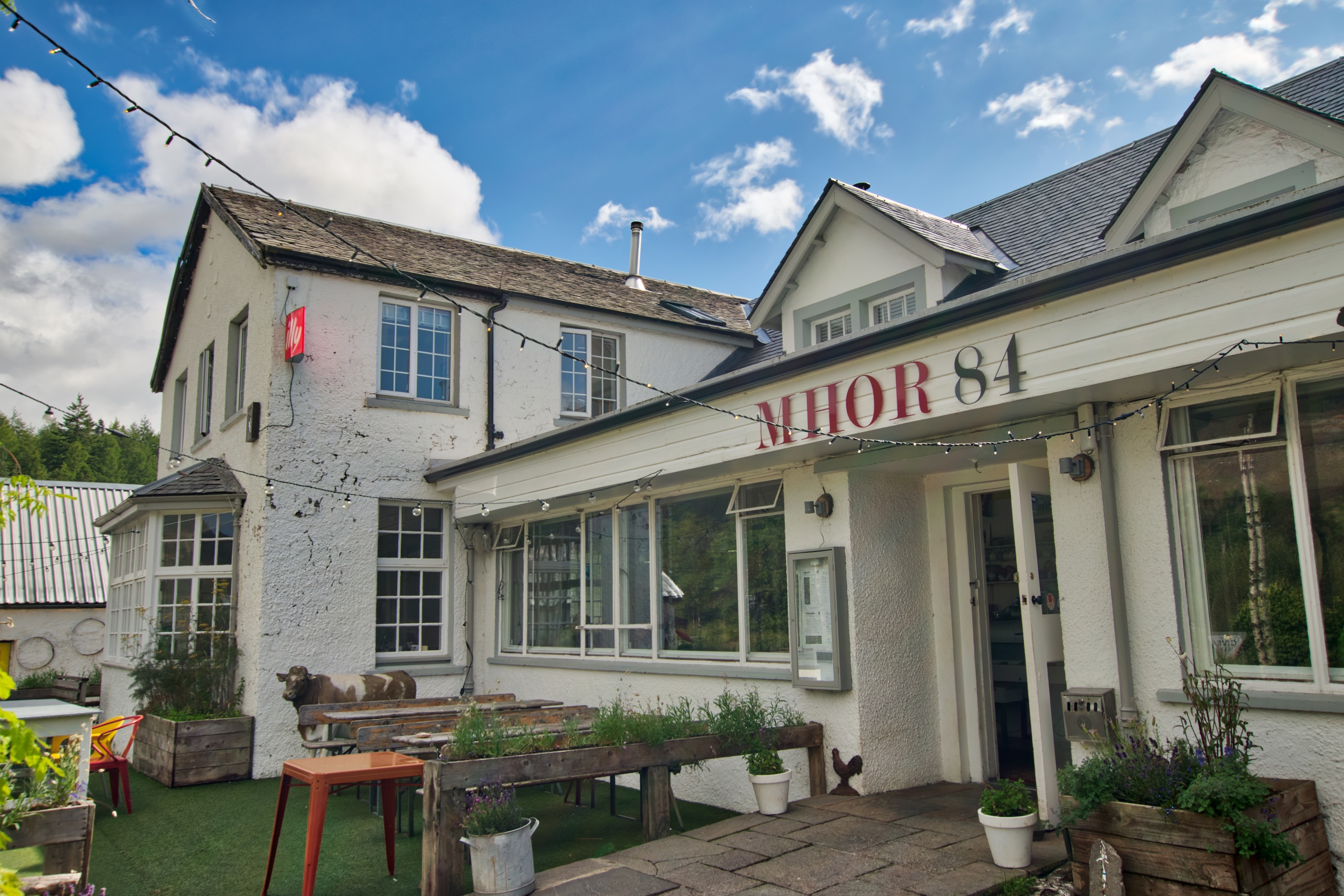 Wir haben trotz der Steigung ganz gut Strecke gemacht und bald ging es auch schon wieder runter nach Kingshouse, wo wir bereits um kurz nach 10 Uhr angekommen sind. Da wir so gut in der Zeit waren, haben wir uns dort bei Mhor 84 eine kleine Kaffeepause gegönnt.