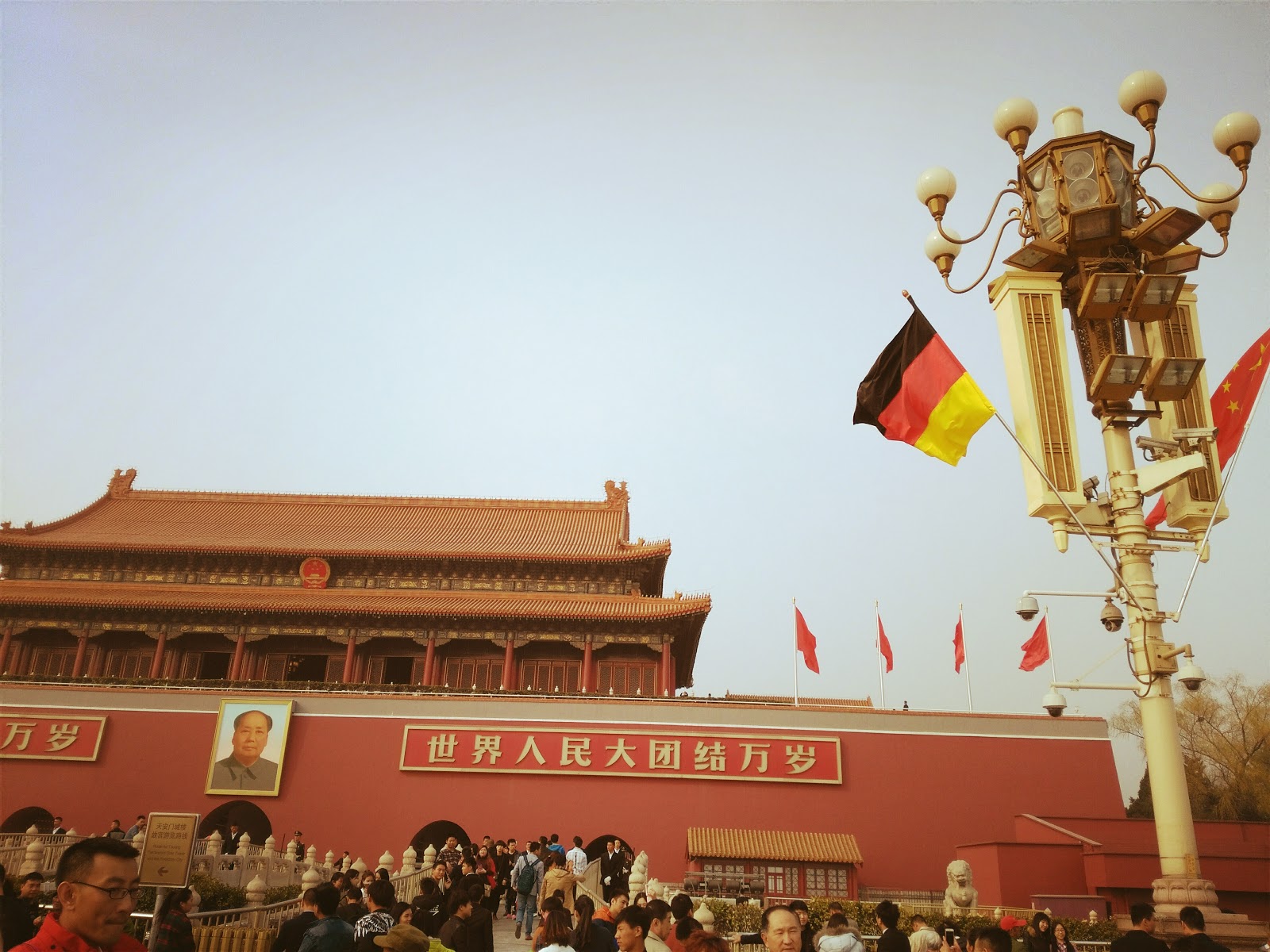 Als ich danach am Tor des Himmlischen Friedens angekommen war, habe ich auch verstanden, warum der Platz gesperrt war. An allen Straßenlaternen waren deutsche und chinesische Flaggen angebracht und eine kurze Recherche im Internet ergab, dass der deutsche Bundespräsident zu einem Staatsbesuch in China ist. Na gut, dann muss ich wohl an einem anderen Tag wiederkommen.