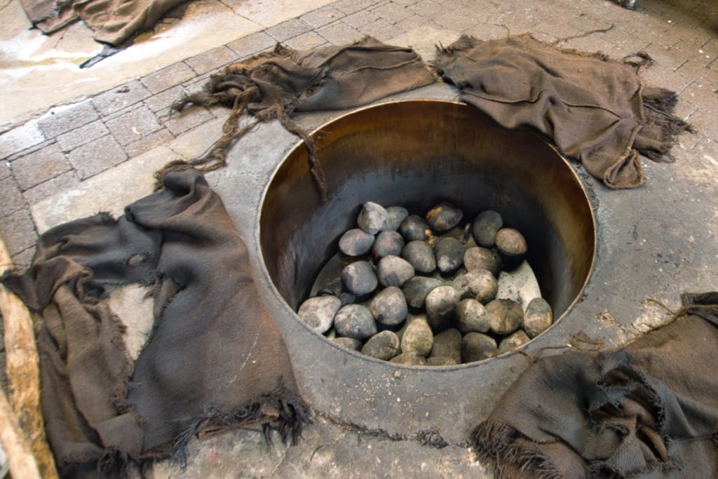 Danach haben wir noch zugesehen, wie unser Hangi-Abendessen aus dem mit heißen Steinen beheizten Erdofen gehoben wurde.