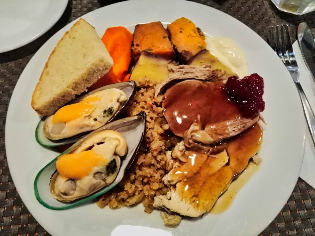 Zum Abschluss des Abends gab es dann ein traditionelles Hangi-Buffet. Die Auswahl war sehr gut und beim Abendessen bin ich mit meiner Sitznachbarin ins Gespräch gekommen, die aus den Niederlanden kam und auch im YHA Hostel wohnte, und wir haben uns beim Essen gut unterhalten.