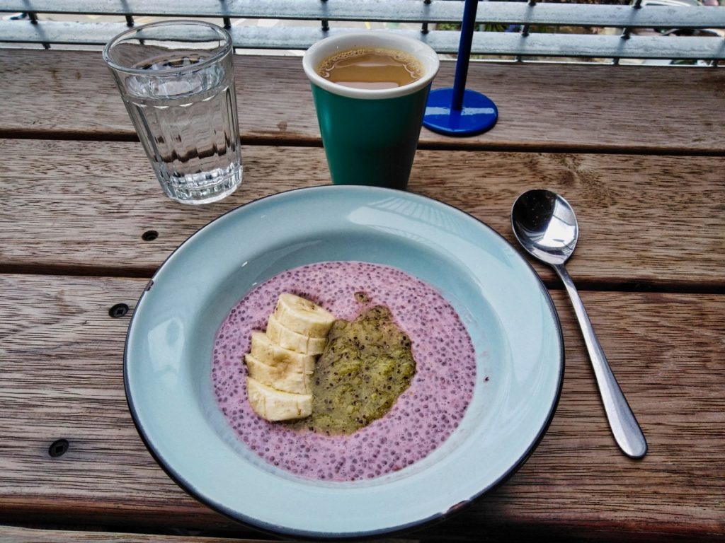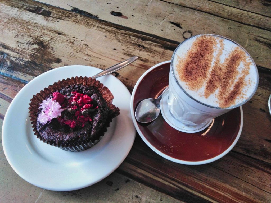 Da ich nicht wirklich gesättigt war, habe ich dem Vudu Café & Larder noch einen weiteren Besuch abgestattet, einen Chai Latte getrunken, einen veganen Brownie gegessen und ein paar Postkarten geschrieben.