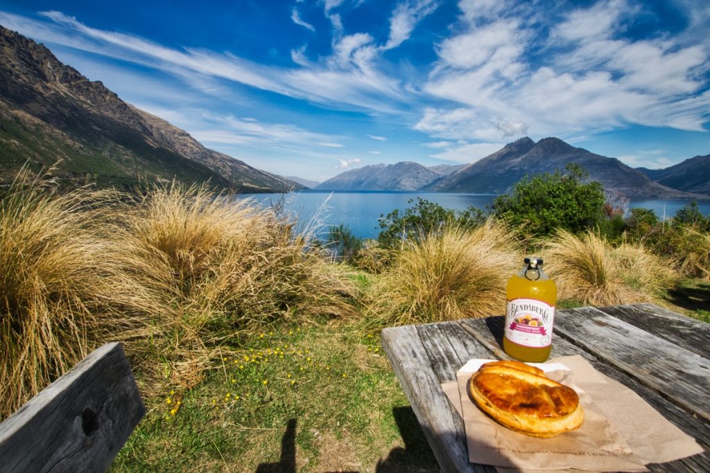 Kurz hinter Queenstown habe ich dann an der Drift Bay Picnic Area einen kurzen Stopp gemacht, meine Pie gegessen und die Aussicht genossen.