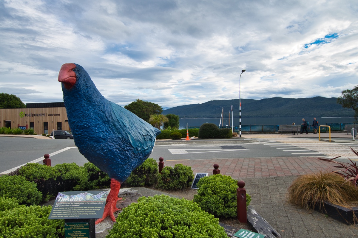 So bin ich so früh in Te Anau angekommen, dass ich vor der für 19 Uhr gebuchten Tour zur Glühwürmchen-Höhle sogar noch ein bisschen Pause machen und Einkaufen gehen konnte. Dabei bin ich auch an einer neuseeländischen Variante der in Australien so beliebten „Big Things“ vorbeigekommen. In diesem Fall ein großer Takahe-Vogel 🙂