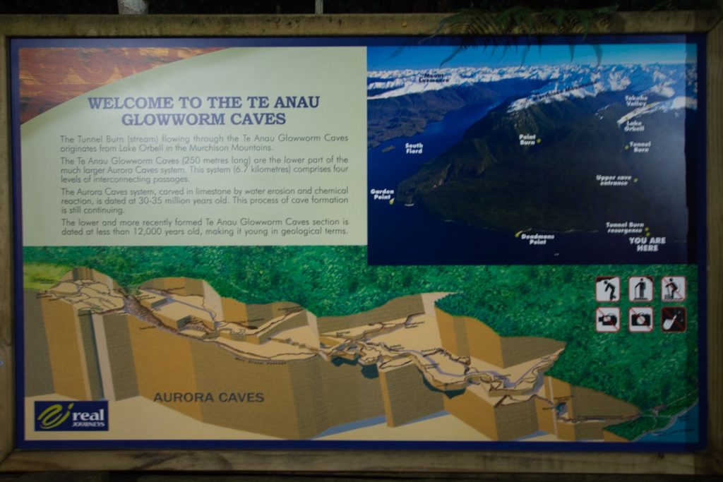 Ich kann nach dem Besuch in der Glowworm Cave die Faszination mancher für Caving bzw. in der seriöseren Variante für Höhlenforschung sehr gut nachvollziehen. Es ist beeindruckend, welche Welt von unterirdischen Flüssen, Seen und Wasserfällen sich in Höhlen wie dieser verbirgt. Die Glowworm Cave von Te Anau ist dabei nur das Ende eines viel größeren Höhlensystems, der Aurora Caves. Die Höhlen wurden (und werden – sie wachsen weiter) von einem Fluss in den Fels geschnitten, der seinen Ursprung im Lake Orbell in den Murchison-Bergen hat. Die Aurora Caves sind 30 bis 35 Millionen Jahre alt, die Glowworm Caves dagegen nur 12000 Jahre.
