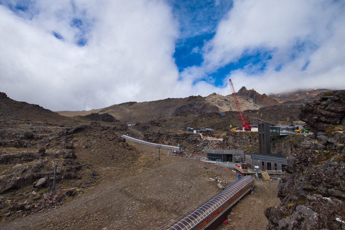 Nachdem wir wieder am Parkplatz angekommen waren, sind wir zunächst zum Whakapapa Ski Resort hinauf gefahren. Dort wird gerade eine Gondelbahn gebaut, die dritte in Neuseeland, von der man sich mehr Tourismus das ganze Jahr über verspricht, da die Skisaison nur drei Monate lang ist.
