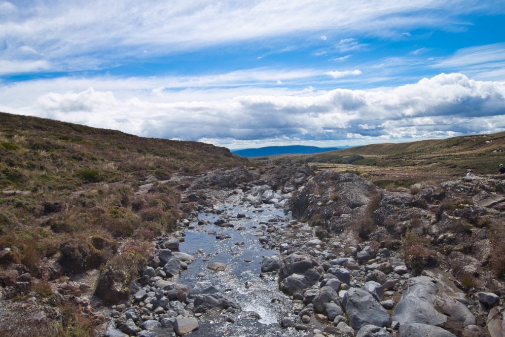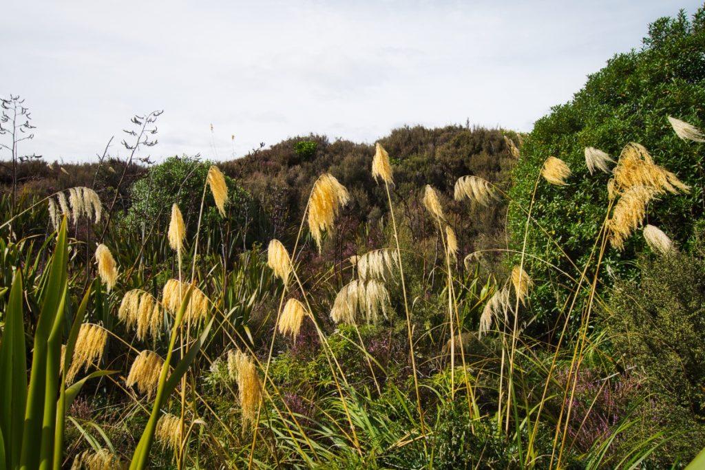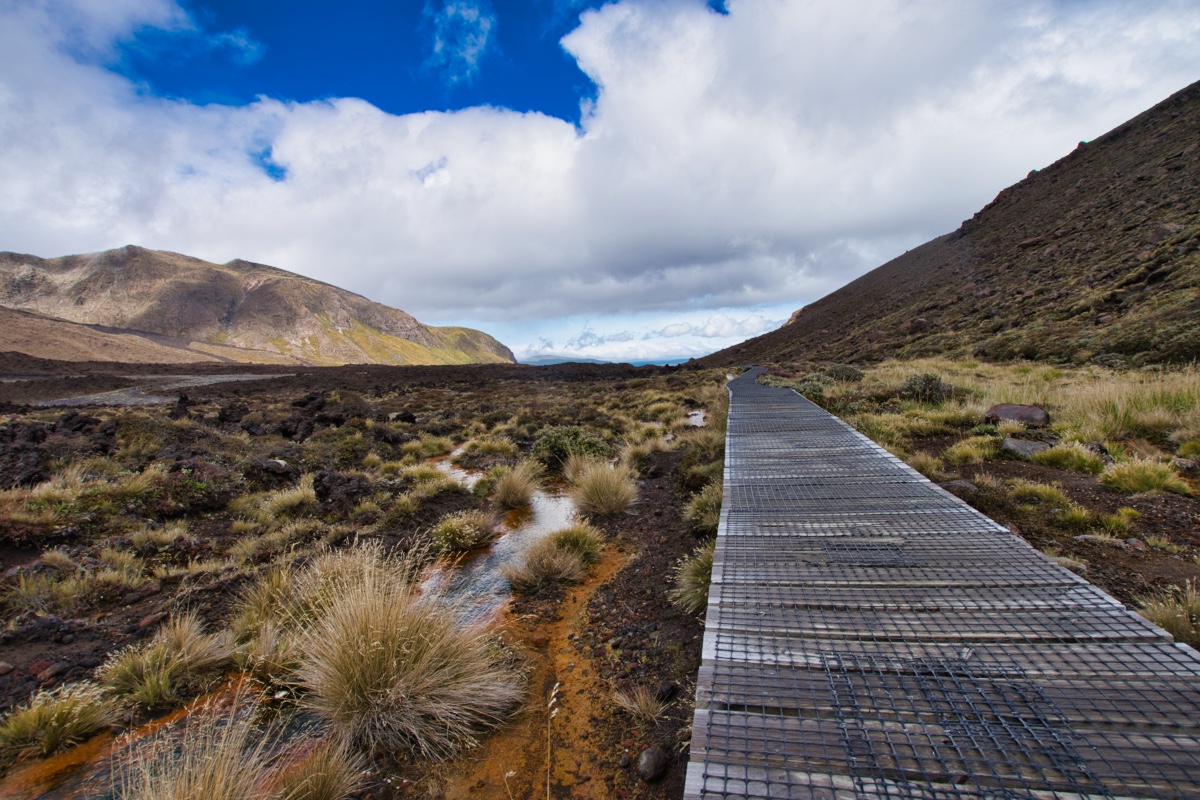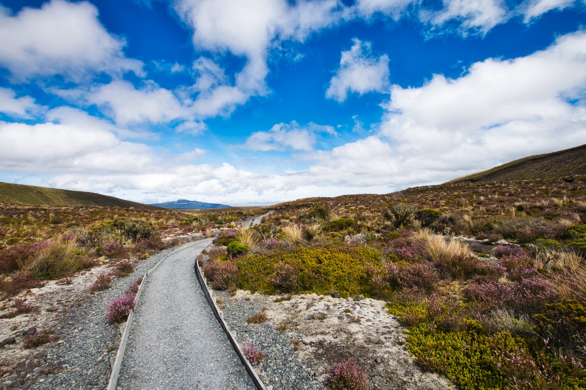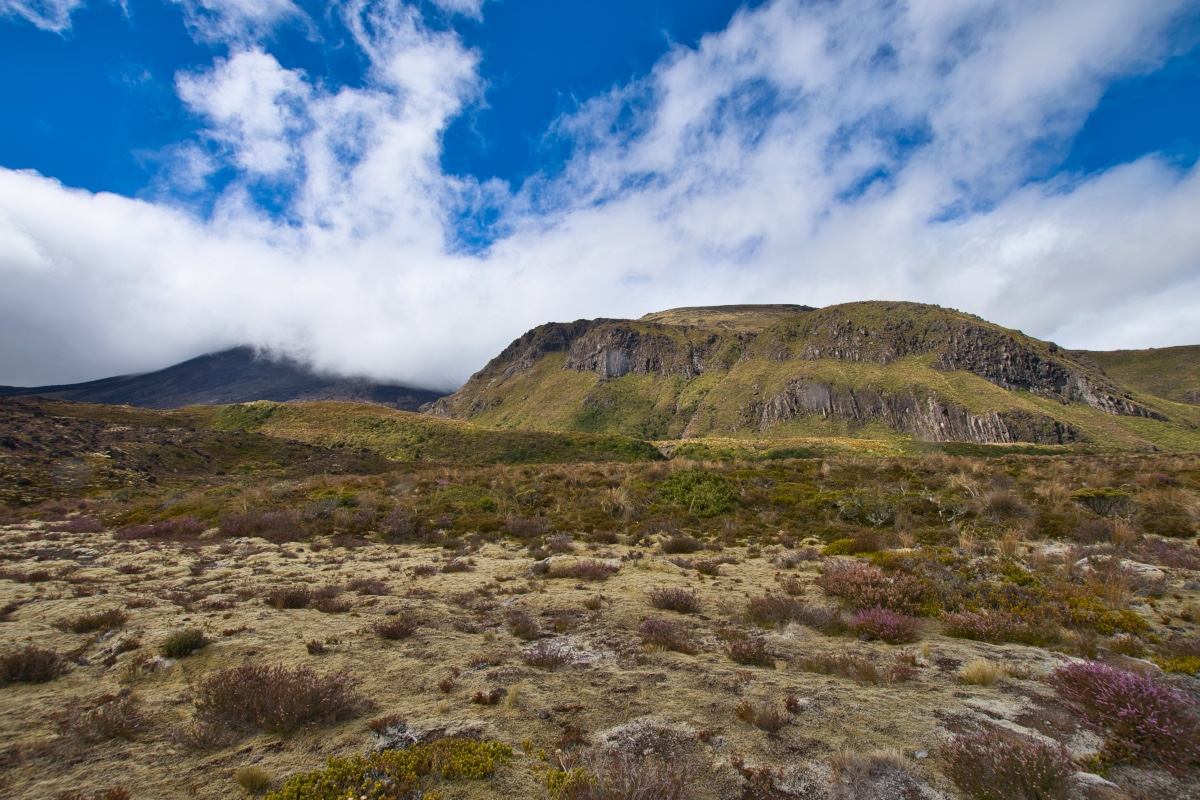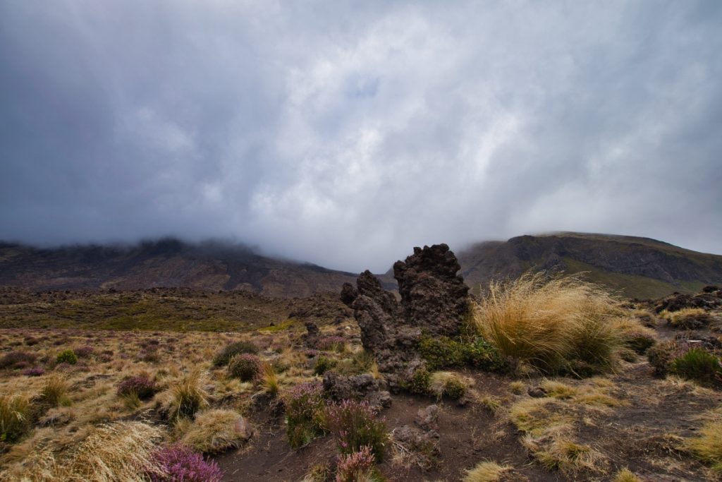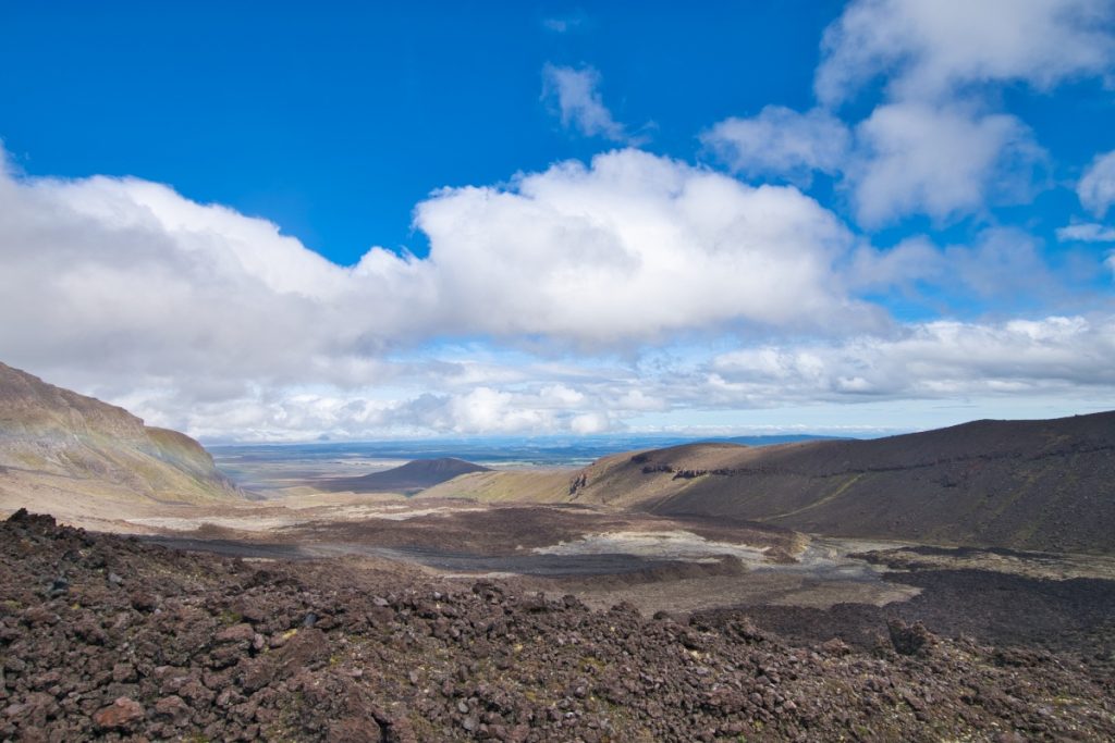 Der erste Teil der Wanderung durch das Mangatepopo Valley war sehr angenehm zu laufen. Der Weg war gut ausgebaut und über weite Strecken gab es sogar einen Boardwalk. Die Heide lässt den Tongariro Nationalpark ein bisschen aussehen wie die schottischen Highlands. Die Pflanzen sind allerdings nicht in Neuseeland heimisch, sondern wurden vor über hundert Jahren angepflanzt, weil man versuchen wollte, im Tongariro Nationalpark Auerhähne auszuwildern und so- wie in Schottland – Grouse Shooting zu etablieren. Die Heide ist eine echte Pest, aber sie kommt mit dem vulkanischen Boden sehr gut zu recht und ist schwierig auszumerzen.