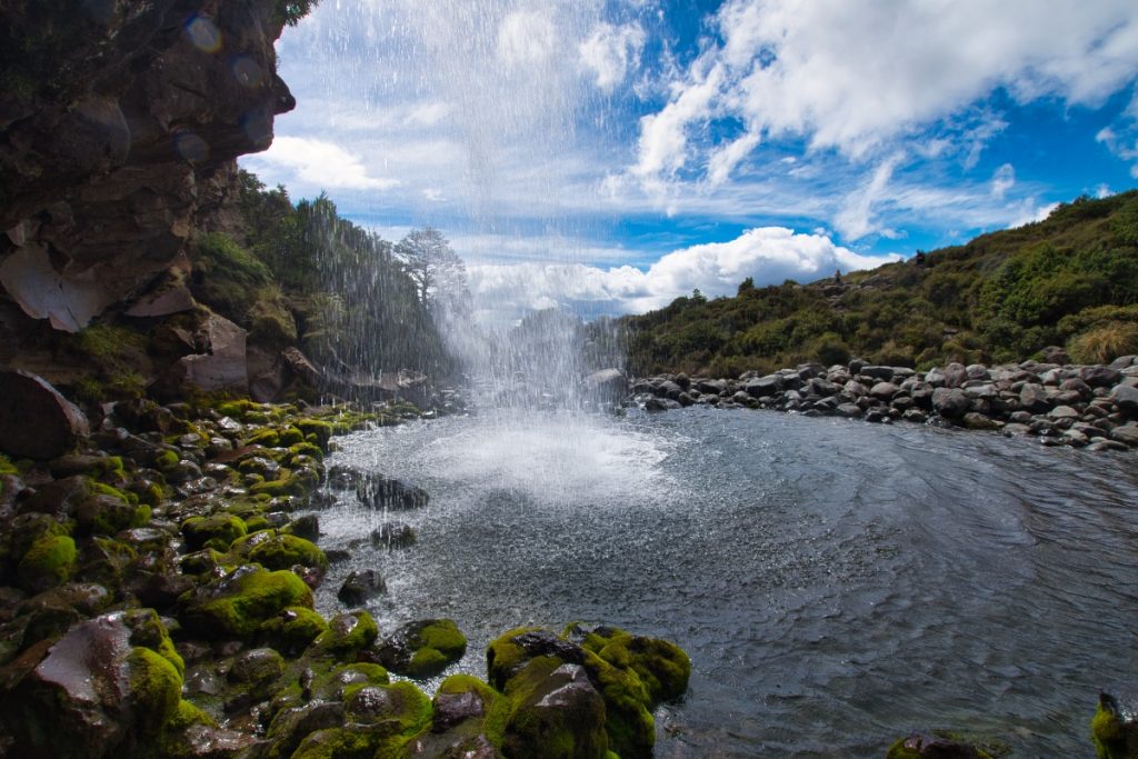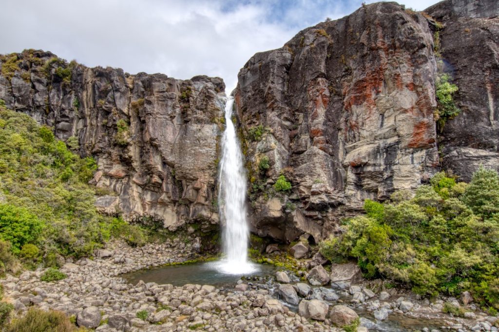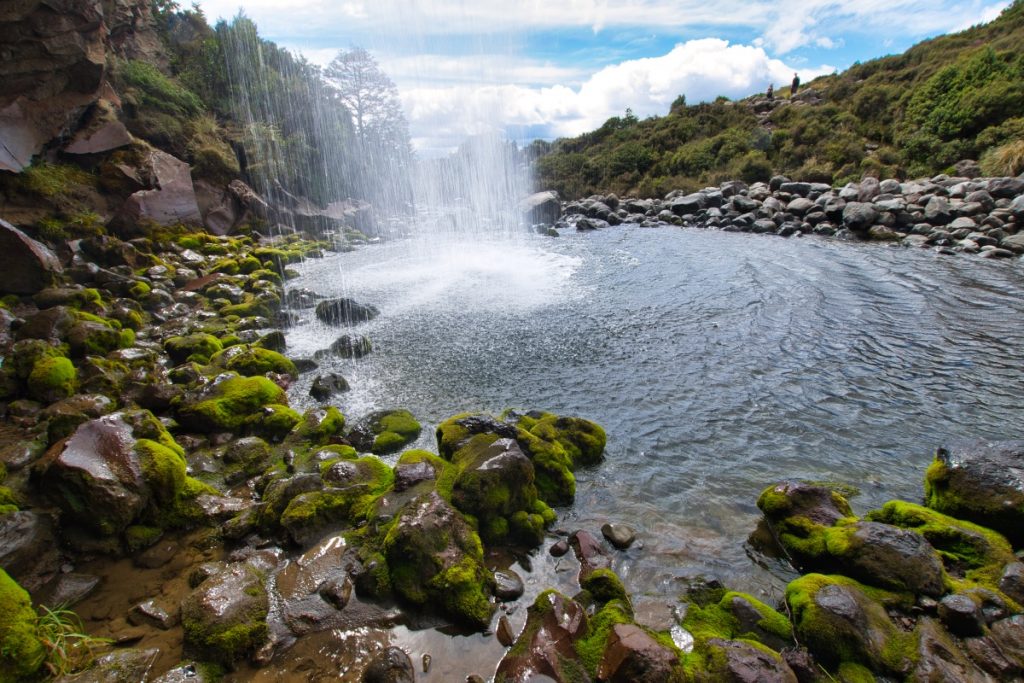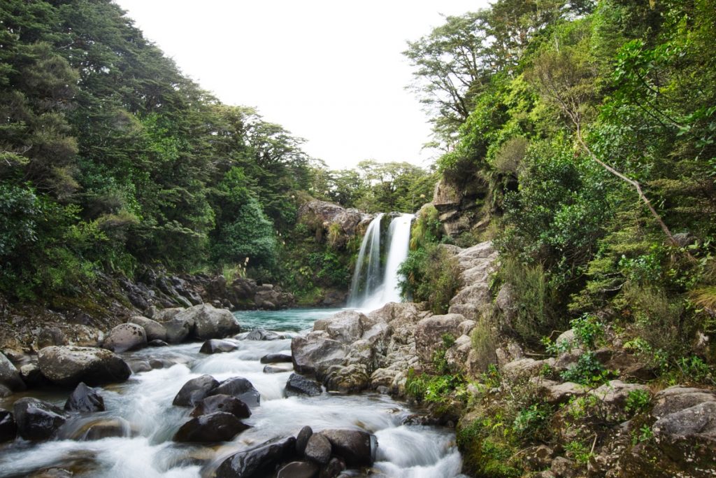 Die Taranaki Falls waren sehr schön anzugucken und wir sind sogar bis fast hinter den Wasserfall geklettert. Leider war es ein bisschen zu windig und wir wurden schon so naß gespritzt, sodass wir nicht ganz hinter den Wasserfall klettern konnten.