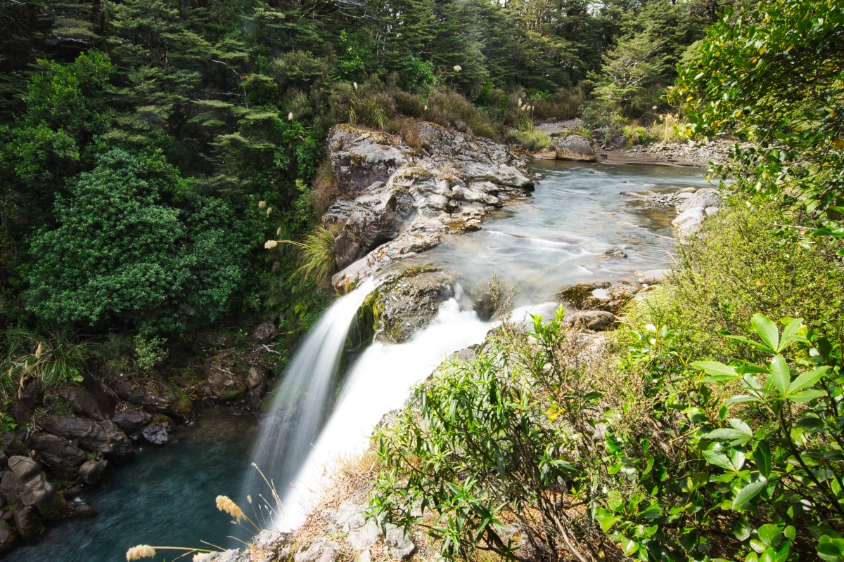 Den Nachmittag haben wir dann mit einer Wanderung zu den Taranaki Falls verbracht. Diese Wanderung war auch mit meiner leichten Erkältung gut zu schaffen. Das Wetter war jetzt überwiegend gut, sodass ich die Kamera wieder rausholen und ein paar schöne Fotos machen konnte. Hier hat definitiv mehr die Sonne geschienen als in den Bergen.