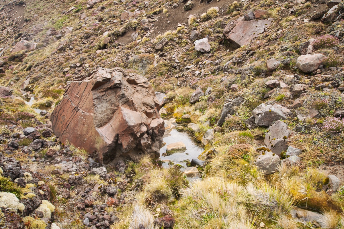 Als wir in Soda Springs angekommen sind und der erste echte Anstieg vor uns lag, habe ich entschieden umzudrehen. Ich hatte nicht den Eindruck, dass ich mir einen Gefallen tun würde, wenn ich in meiner Verfassung versuchen würde weiter zu wandern. Außerdem war das Wetter wie gesagt auch nicht optimal und die Chancen standen aus meiner Sicht recht gut, dass ich die Kraterseen, für die das Tongariro Alpine Crossing so berühmt ist, ohnehin nicht oder jedenfalls nicht im Sonnenschein würde sehen können.