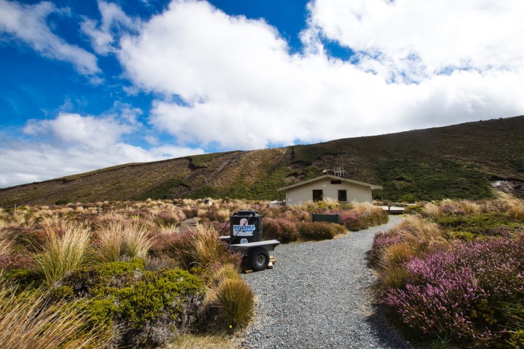 Auf dem Rückweg haben wir einen kleinen Stopp an der Mangatepopo Hut gemacht. In dieser Hütte kann man übernachten, wenn man die Mehrtageswanderung auf dem Tongariro Northern Circuit macht. Man muss die Hütte nur vorbuchen. Es gibt sogar einen Ranger, der dort Tag und Nacht vor Ort ist. Die Hütte sah sehr modern und gut ausgestattet aus. Dort hätte man sicher sehr komfortabel übernachten können.
