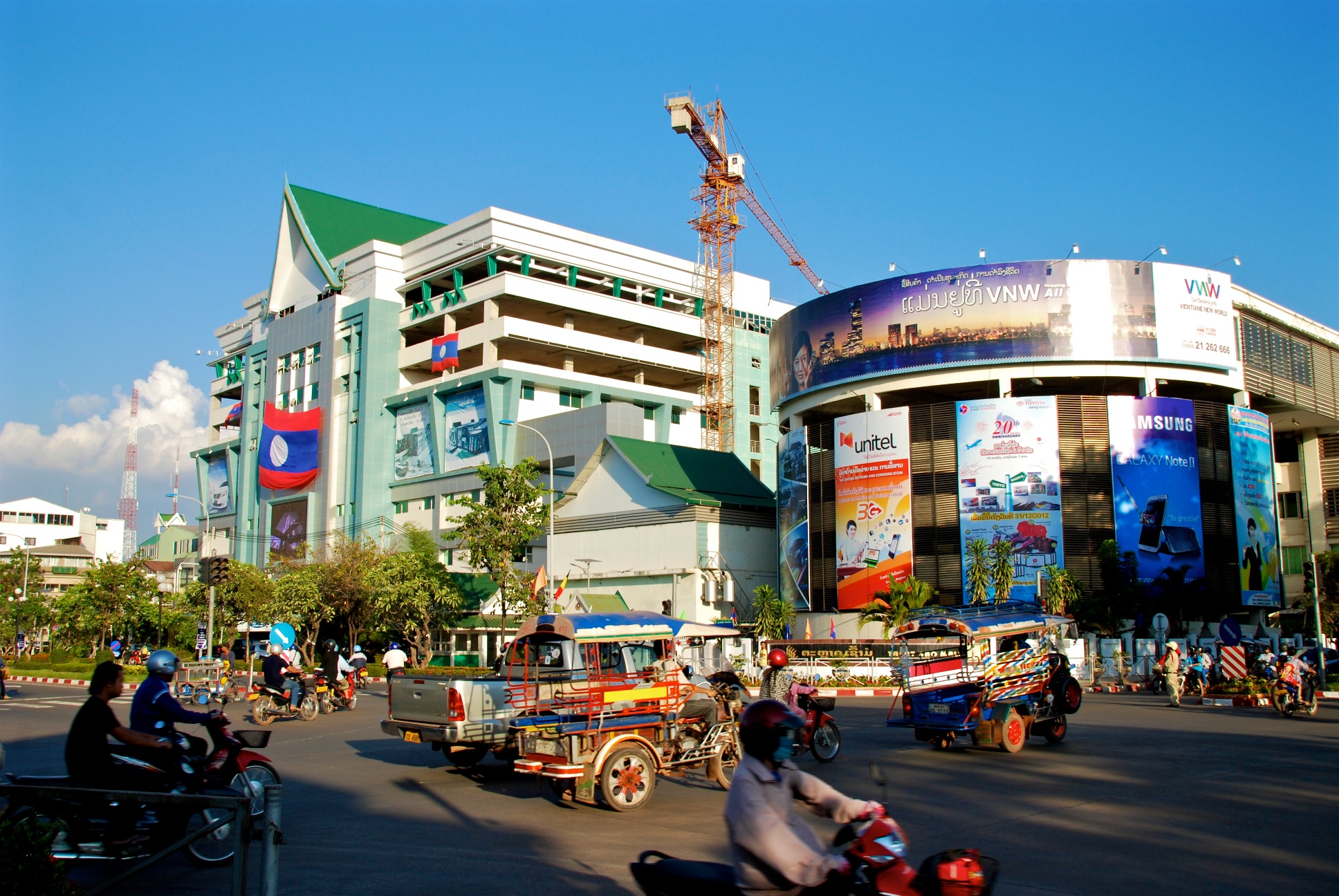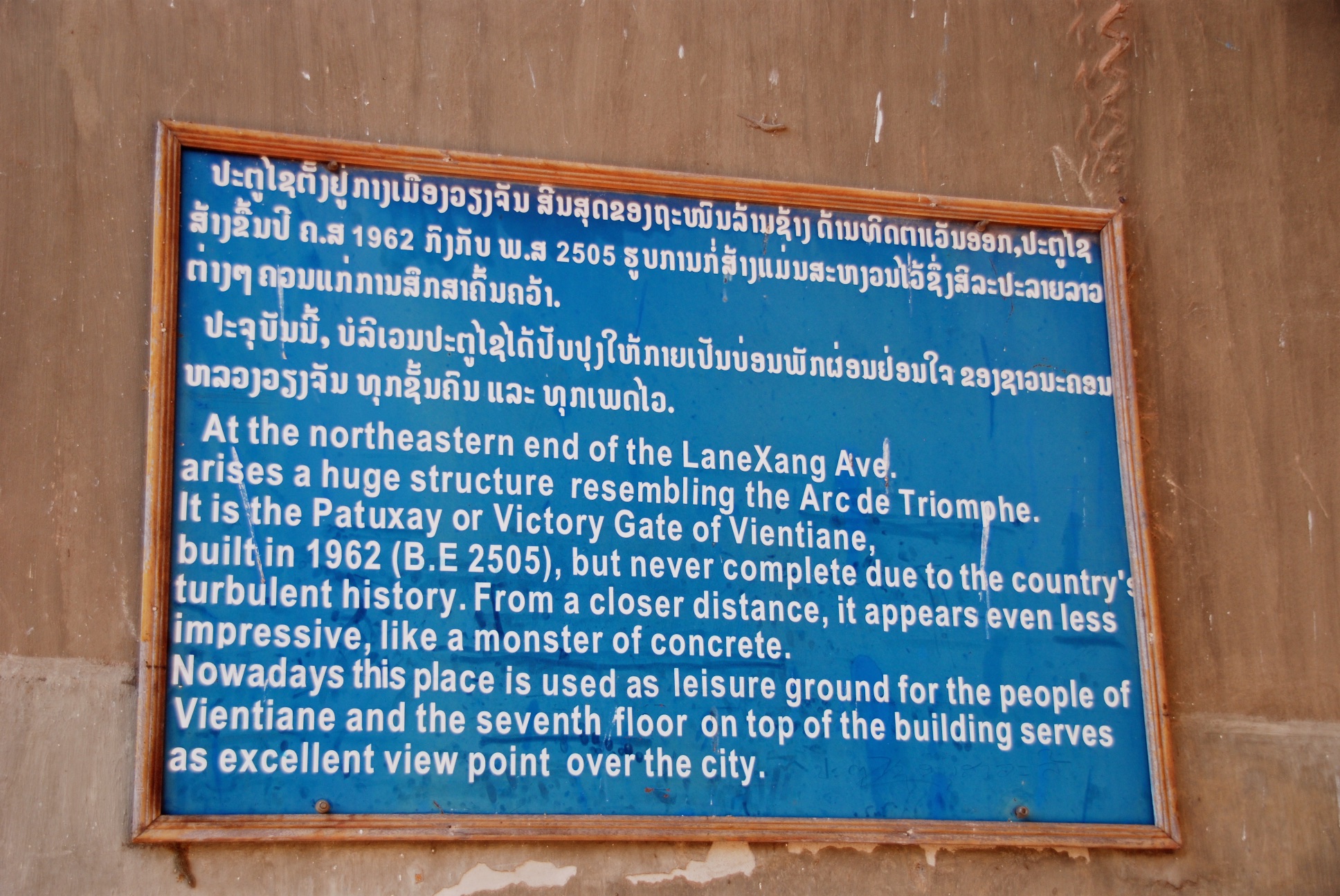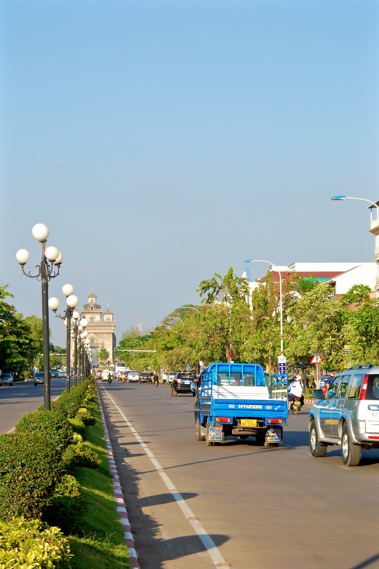 Durch den Abstecher zur Höhle waren wir nach einer ansonsten ereignislosen Fahrt erst um Viertel nach drei in Vientiane. Eigentlich sollte dann auch erst noch eine Bustour durch die Stadt stattfinden und erst danach sollten wir zum Hotel fahren. Da ich für den Nachmittag einen mehrstündigen Stadtspaziergang geplant hatte, habe ich mich allerdings vorher absetzen lassen und bin dann auch zügig zu meiner Tour gestartet.