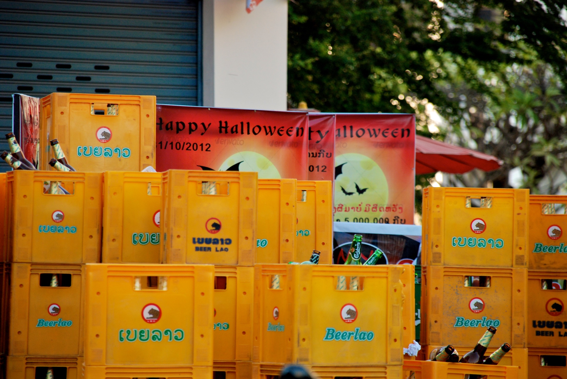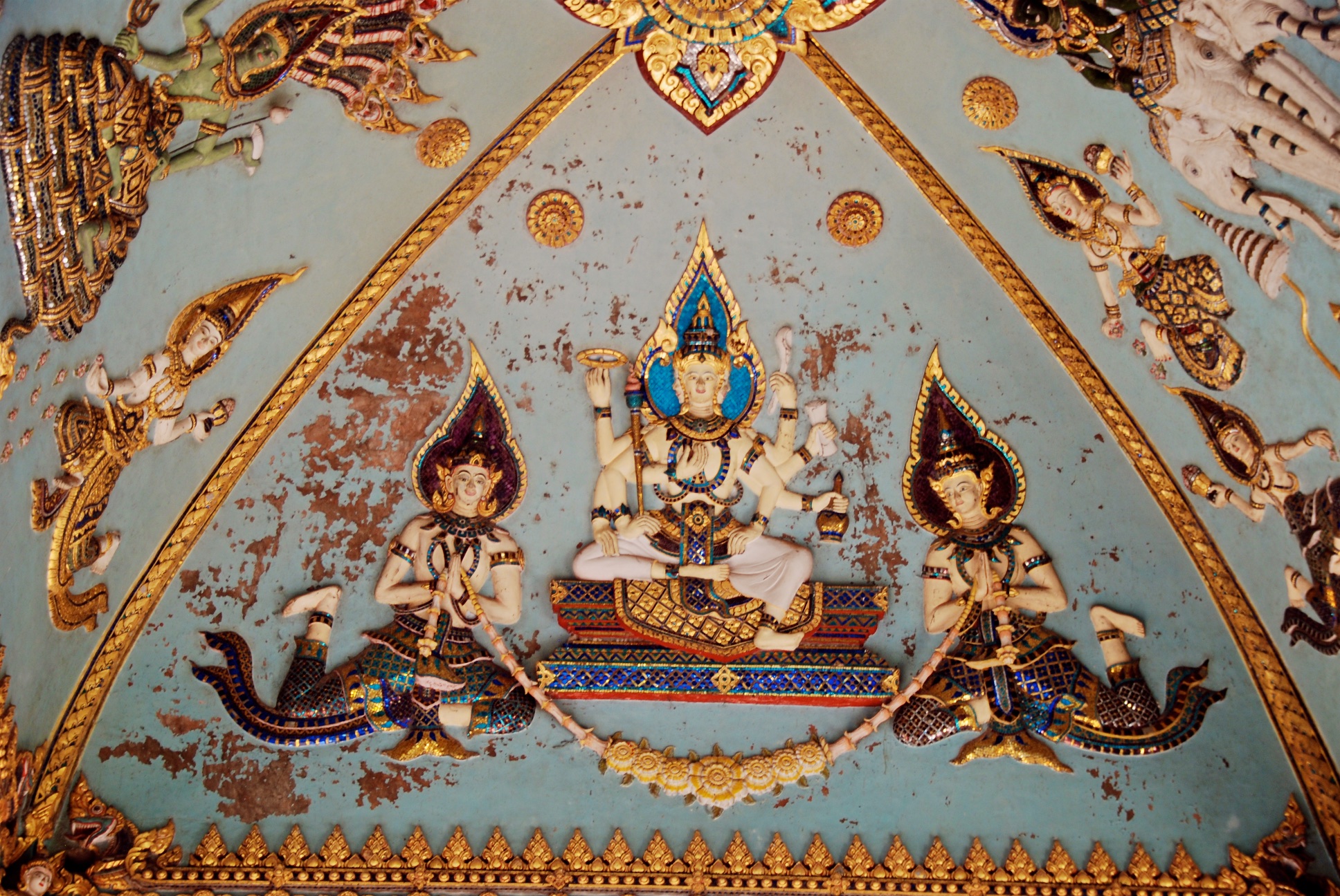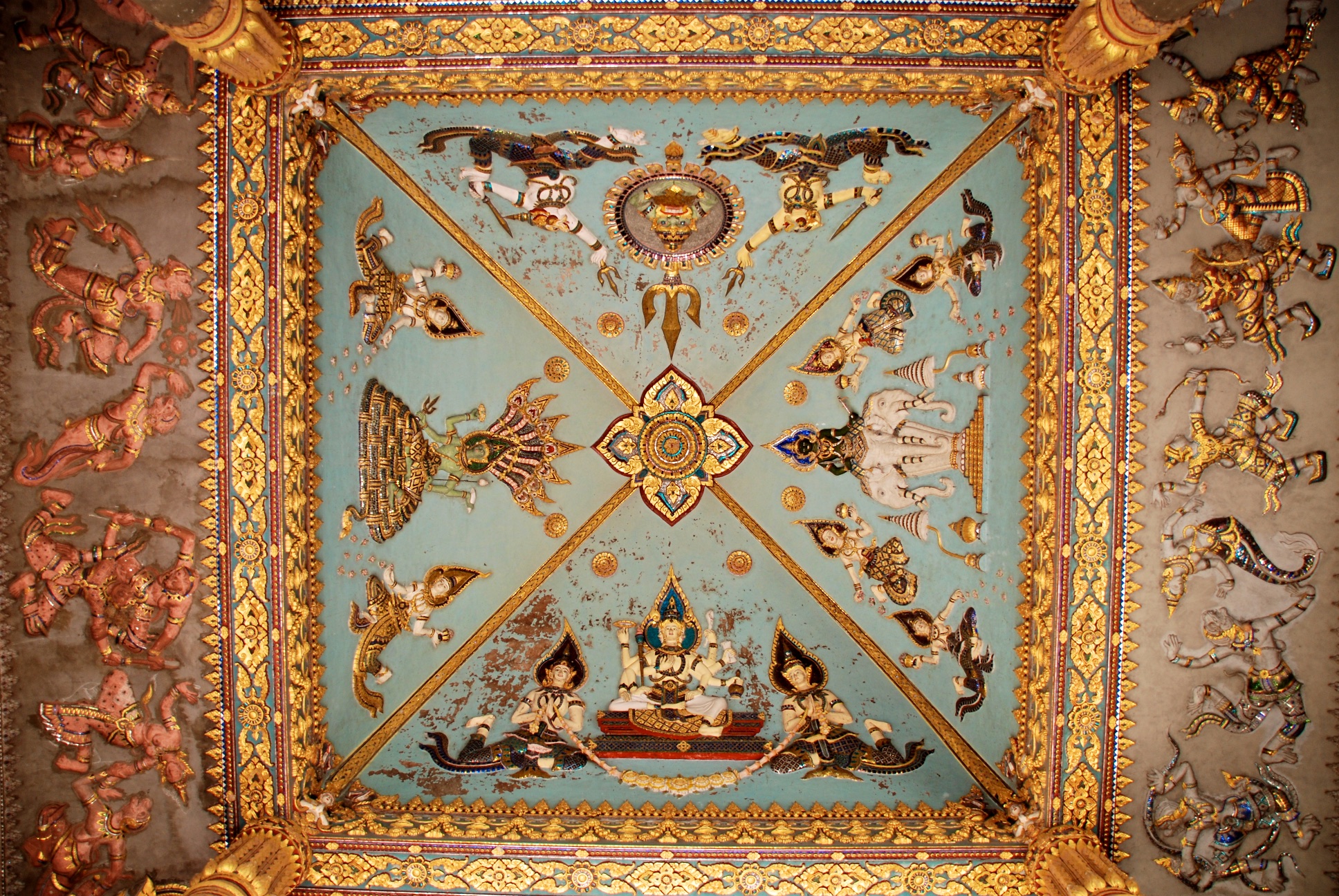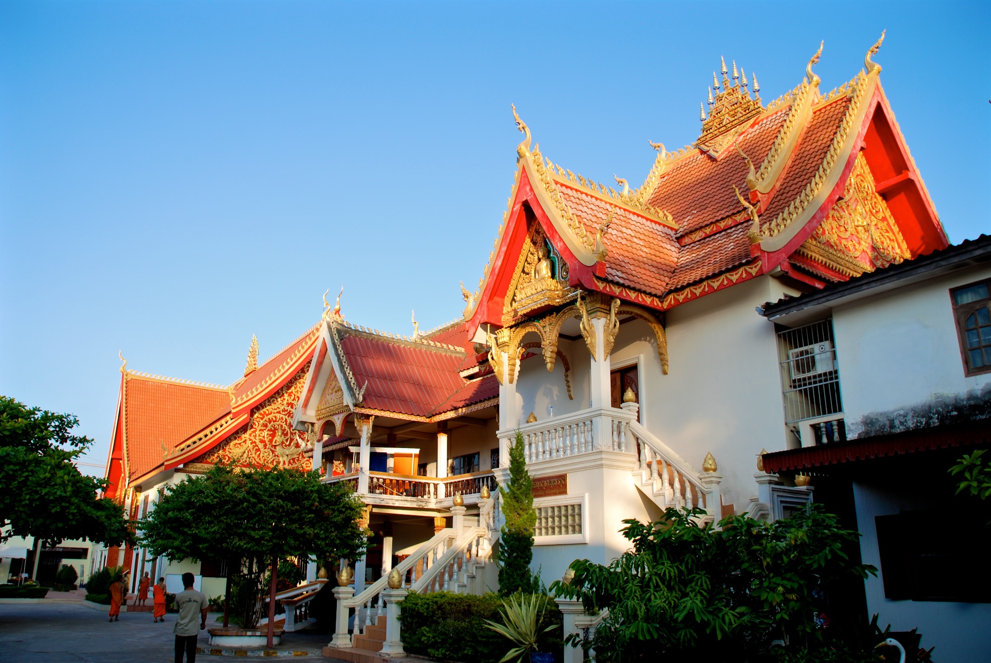 Am Patouxai, oder Siegestor, habe ich die Gruppe dann zufällig wiedergetroffen, die dort auch gerade mit dem Bus einen kurzen Halt gemacht hatte. Von dort bin ich vorbei am Salat Tao Markt zum That Dam gelaufen, einer Stupa mitten auf eine wenig befahrenen Kreisverkehr. Weiter ging es vorbei am Nam Phou Platz mit seinem Springbrunnen zum Präsidentenpalast und dem Tempel Wat Sisaket. Leider war der Tempel schon geschlossen, sodass ich ihn nur von außen betrachten konnte. Gleiches galt leider auch für den heute als Museum genutzten Tempel Haw Pha Kaew. Am Ufer des Mekong bin ich dann wieder Richtung Hotel gelaufen.