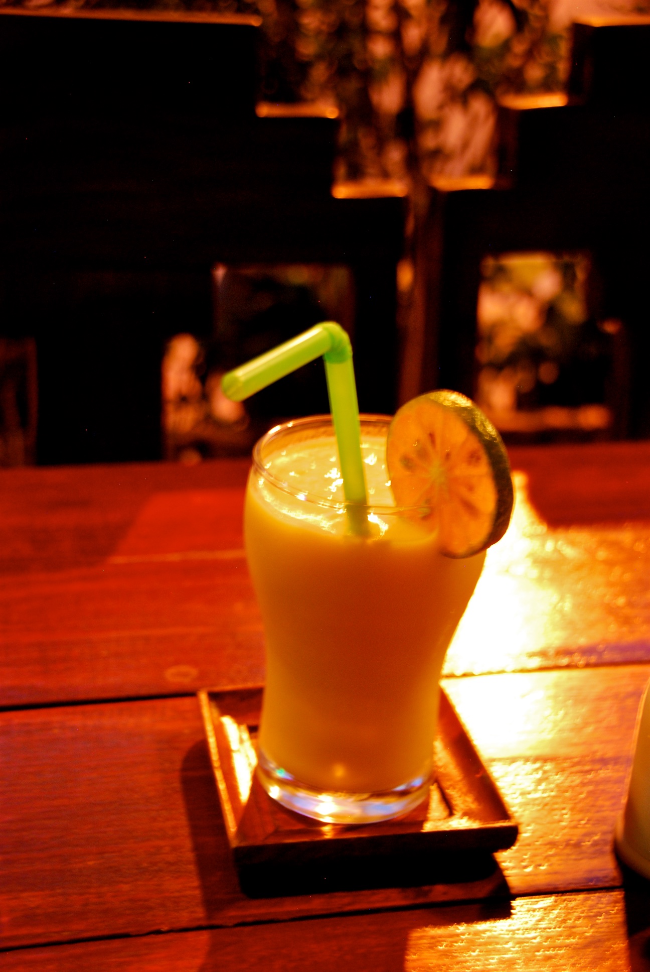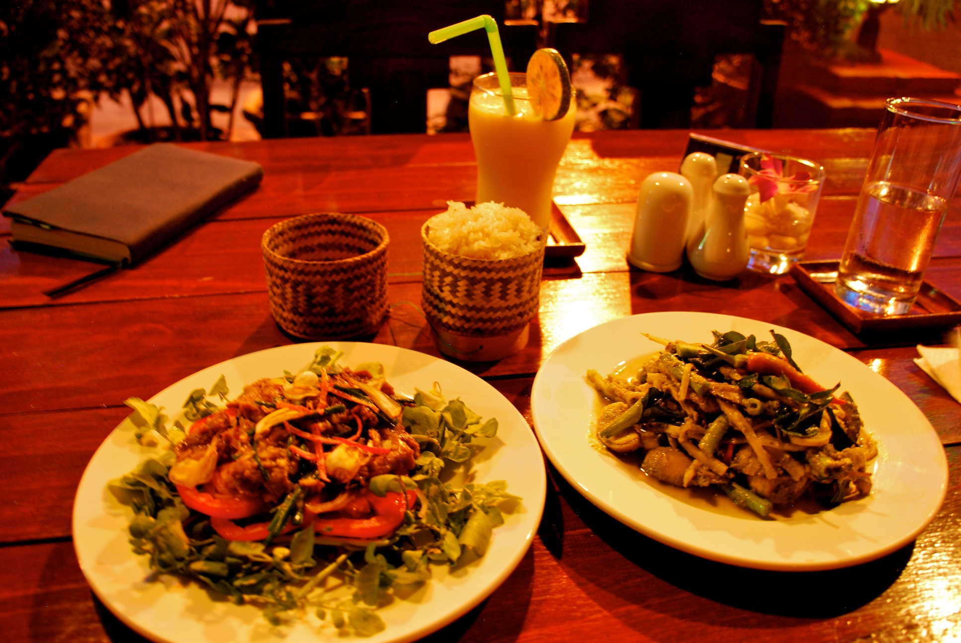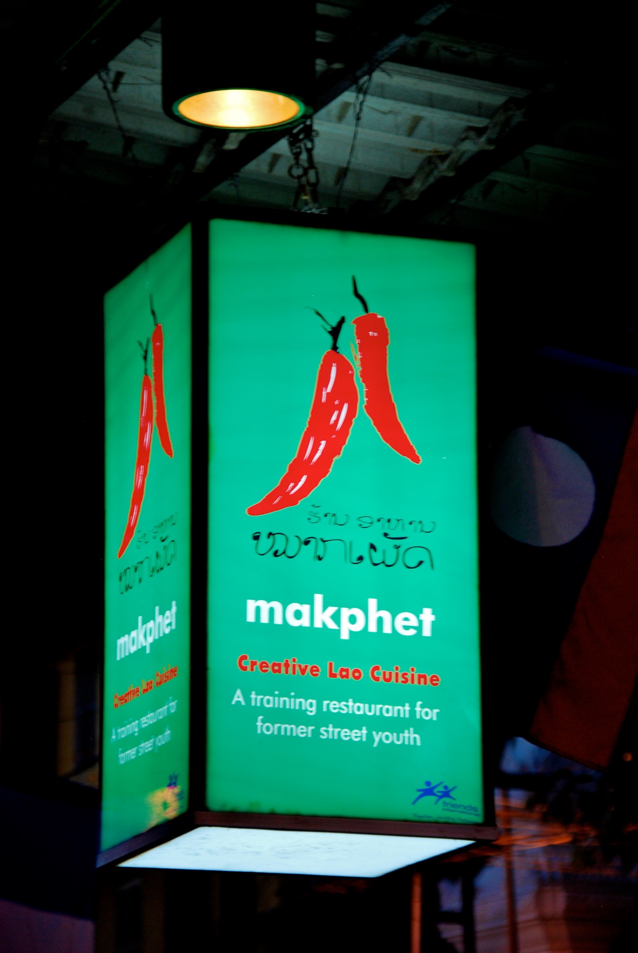 Mittlerweile war es halb sechs und da ich mittags nichts richtiges gegessen hatte, war ich schon sehr hungrig. Eigentlich hatte ich mich für sieben Uhr mit dem Rest der Gruppe zum Essen verabredet, aber als ich dann zufällig bei Makphet vorbeigekommen bin, war die Entscheidung getroffen. Über Makphet hatte ich schon in meinem Reiseführer gelesen und von zu Hause aus auch schon ihre Website angesehen. Im Makphet werden ehemalige Strassenkinder zu Köchen und Kellnern ausgebildet. Das Essen und auch mein Fruit Shake waren hervorragend. Sie servieren auch halbe Portionen, sodass ich zwei verschiedene Gerichte probiert habe. Und einen Nachtisch habe ich mir dann auch noch gegönnt. Gegen sechs Uhr war das Restaurant schon voll besetzt. Eine Frau wollte das Personal schon wieder wegschicken, aber da ich einen Vierertisch für mich alleine hatte, habe ich ihr angeboten sich den Tisch mit mir zu teilen. Wie sich herausstellte, war sie Japanerin und hatte als Journalistin über den ASEM-Gipfel berichtet, der am Vortag zu Ende gegangen war.