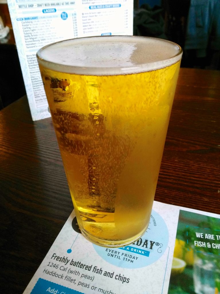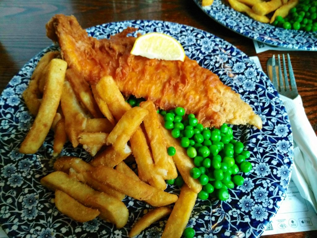 Zum Abendessen waren wir heute nebenan bei „The Standing Order“, einem Pub der Wetherspoon’s Kette. Das Essen war durchschnittlich, aber die Räumlichkeiten des Pubs waren großartig. Eine große hohe Halle mit mehreren kleinen, mit Bücherregalen gesäumten Nebenräumen. Die Mitarbeiterin des Hostels erzählte uns später, dass das Gebäude einmal eine Bank gewesen sei und es sogar noch den Tresor zu sehen gäbe. In einem der Nebenraum haben wir dann auch sofort einen Platz gefunden. Im Regal hinter unserem Tisch standen lauter sehr alte Bücher, unter anderem ein Buch von Churchill, ein Band des All England Law Report und ein deutsches Buch über Wien. Zum Essen gab’s Fish & Chips und natürlich ein Pint Cider. Das ganze für günstige 7,99 Pfund.