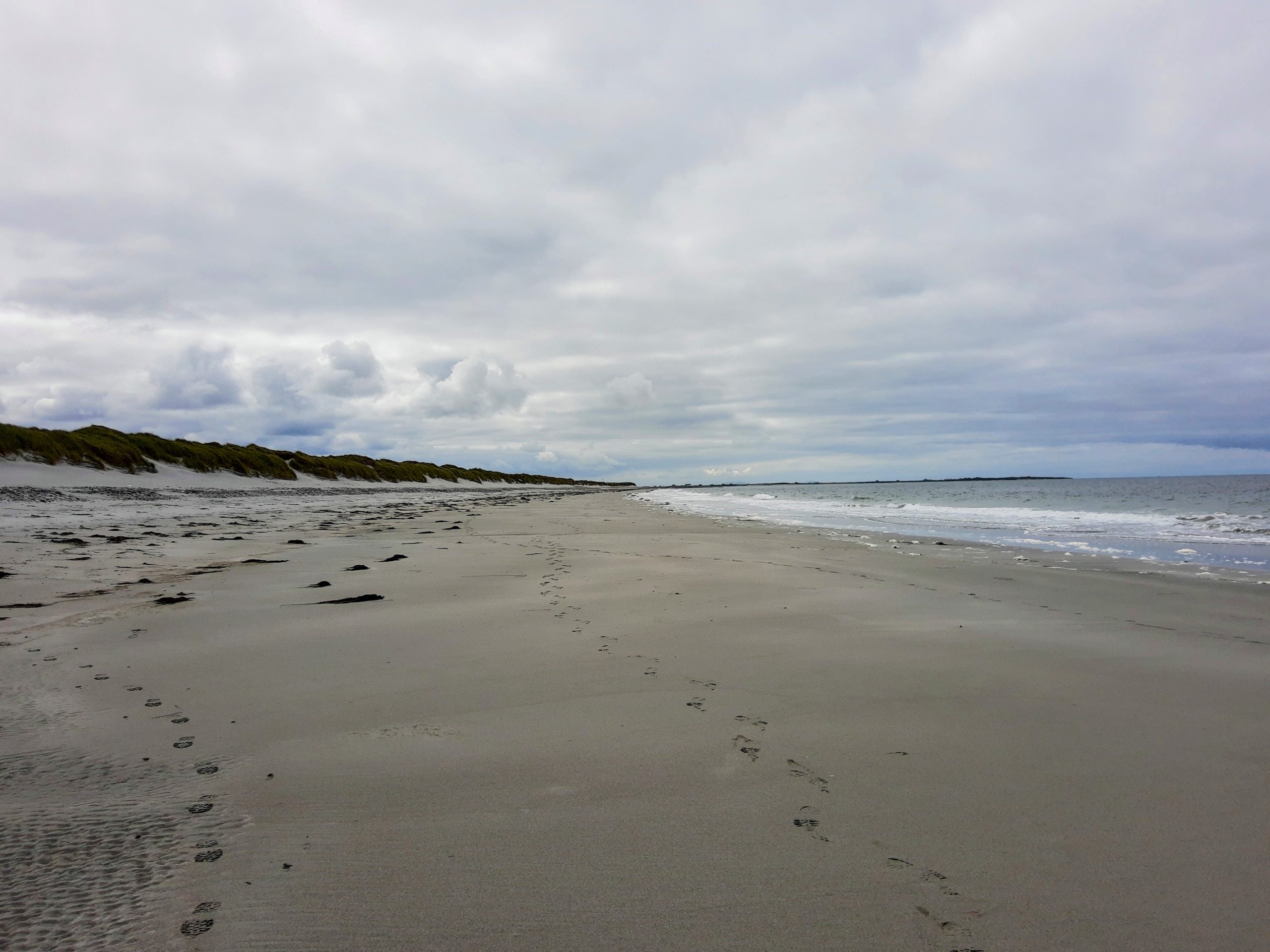 Kurz darauf wären wir besser wieder auf den Strand gewechselt, weil der Weg nun hinter den Dünen verlief und ziemlcih zugewachsen war mit hohem Gras. Leider gab es auch länger keine Möglichkeit auf den Strand zu wechseln. Irgendwann haben wir es dann aber doch geschafft. Auf dem Strand ging es wieder besser voran.