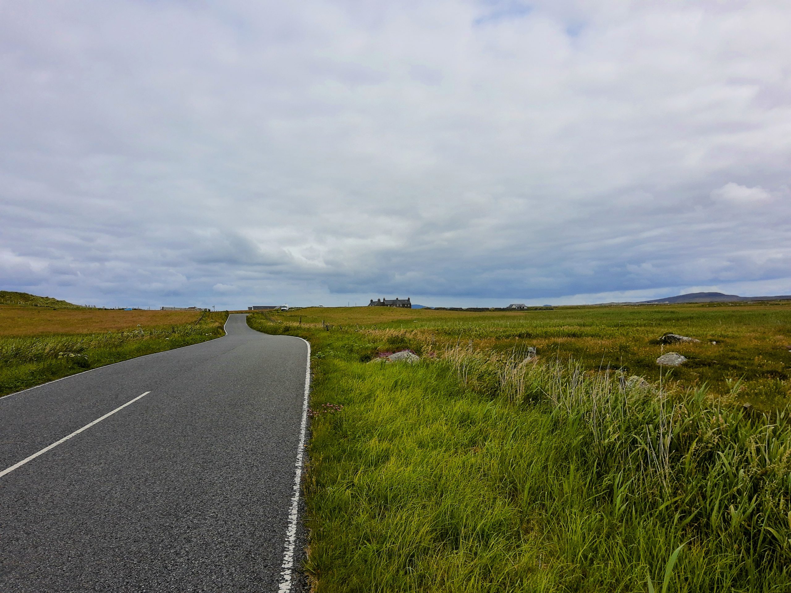 Vor dem Örtchen Nunton haben wir den Strand wieder verlassen, um auf der Straße nach Nunton hinein zu laufen. Als wir einem Auto Platz machen wollten, das auf die Hauptstraße einbiegen wollte, sotrach uns der Fahrer, ein älterer Herr, an. Wir haben uns dann sicher eine Viertelstunde nett mit ihm unterhalten. Er erzählte unter anderem, dass die meisten Investitionen auf den Äußeren Hebriden mit EU-Mitteln finanziert worden seien. Die Frage, ob Schottland für die Unabhängigkeit stimmen würde, verneinte er allerdings. Schottland sei zu klein und finanziell nicht stark genug.