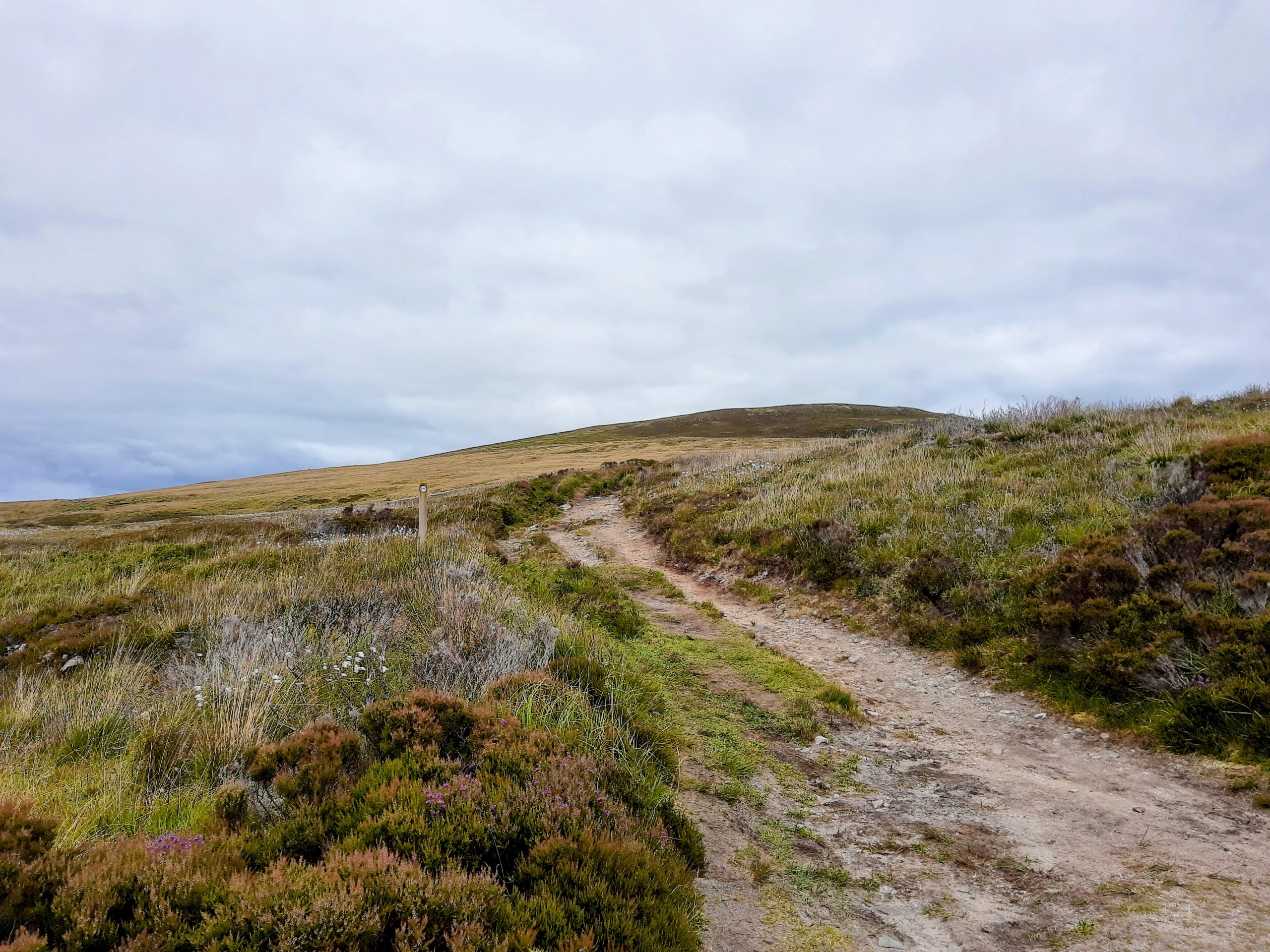 An einem kleinem Steinbruch zweigte links dann der Weg auf den Ruabhal ab. Anfangs war es eine eher mäßige Steigung, aber dann wurde es schnell recht steil. Zum Glück waren es aber ja nur 124 Höhenmeter, sodass wir den Aufstieg am Ende ganz gut gemeistert haben.