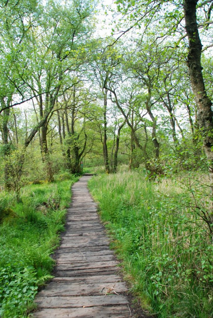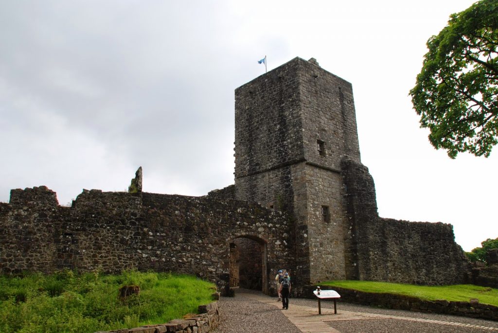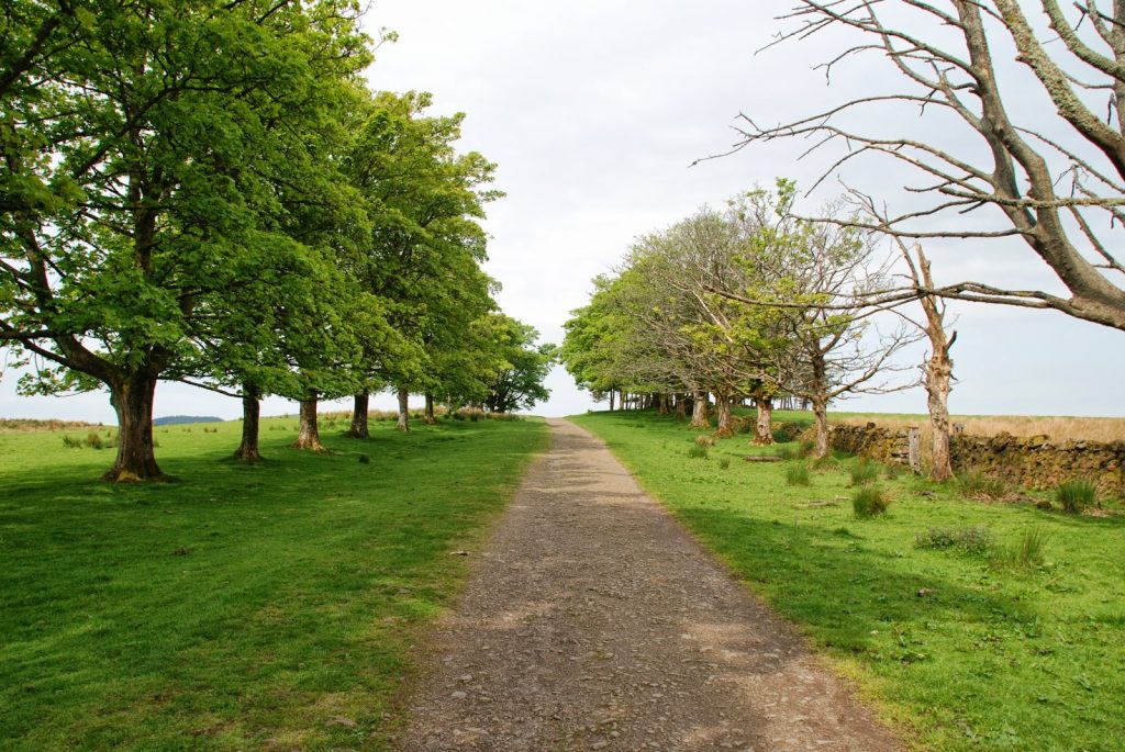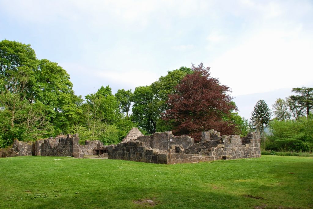 Nachdem wir Milngavie hinter uns gelassen hatten, verlief der Weg zunächst eine ganze Weile recht flach. Bald kam aber auch schon die erste kleinere Steigung. Noch bevor wir ganz oben angekommen waren, wurden wir vom eigentlichen Weg weg geleitet, da dort z. Zt. Bauarbeiten durchgeführt werden. Die Umleitung führte durch den Mugdock Country Park vorbei am Mugdock Castle. Hier wären wir sonst nicht lang gekommen, sodass die Umleitung auch ihren Vorteil hatte.