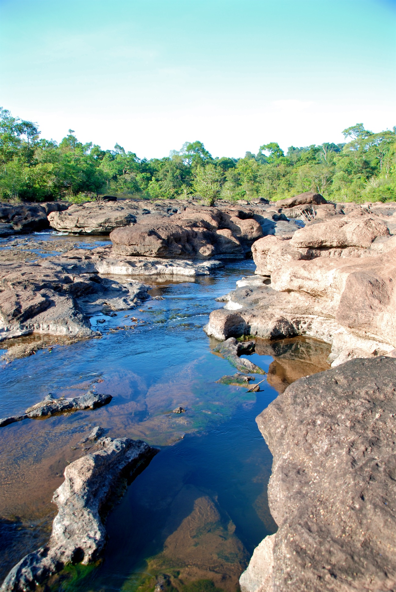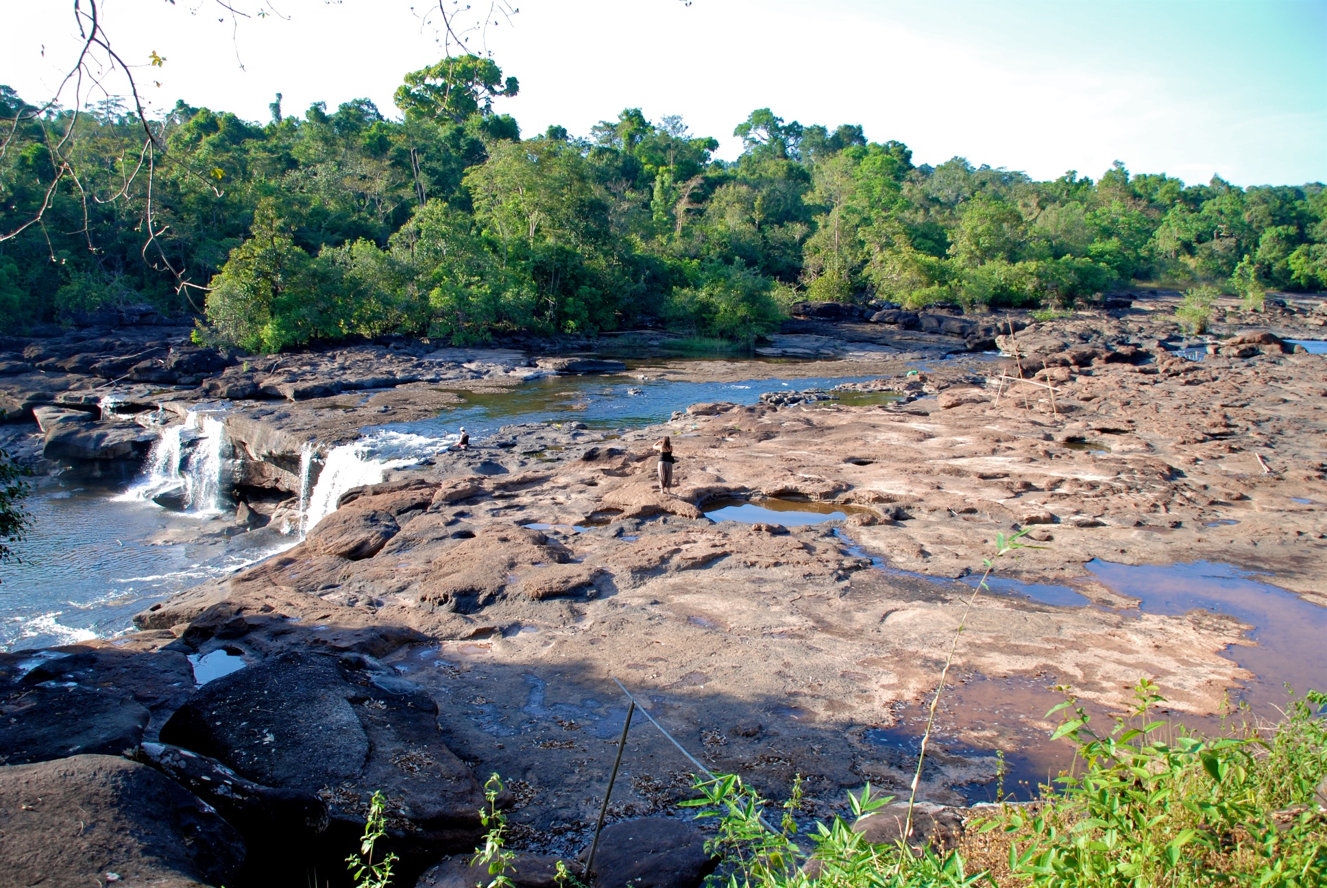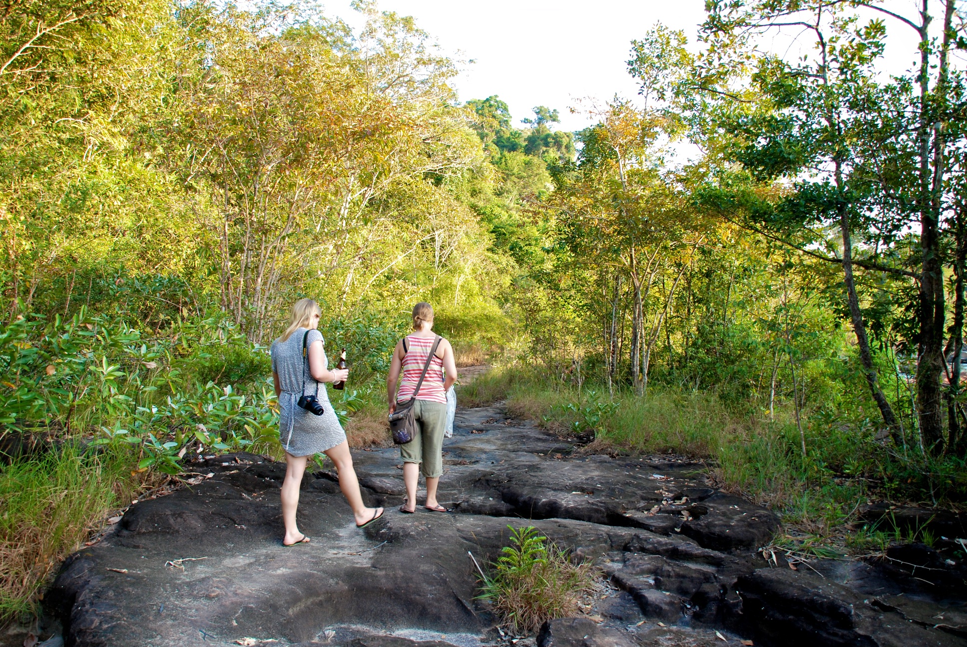 Am Wasserfall gab es ein Infocenter, in dem wir auch unser Nachtlager aufgeschlagen haben. Vor dem Abendessen bestand Gelegenheit zu Schwimmen oder eine kleine Wanderung durch den Urwald zu machen. Es haben sich dann aber nur zwei Leute entschlossen, zu wandern. Trotz entsprechender Warnungen, auf den ausgeschilderten Pfaden zu bleiben und nicht zu weit wegzulaufen, waren die beiden, Audrey und Rudi, bei Einbruch der Dunkelheit noch nicht zurück. Als sie auch nach dem Abendessen noch nicht wieder da waren, ist unser laotischer Guide mit den Park Rangern (mit AK-47 Gewehren) und den männlichen Mitfahrern aufgebrochen, um sie zu suchen. Sie haben sie zum Glück auch gefunden … Aber es war eine ganz schön angespannte Situation, denn neben Bombies gibt es in Laos auch noch Bären, Leoparden und Schlangen! Also sollte man sich tunlichst nicht im Dschungel verlaufen.