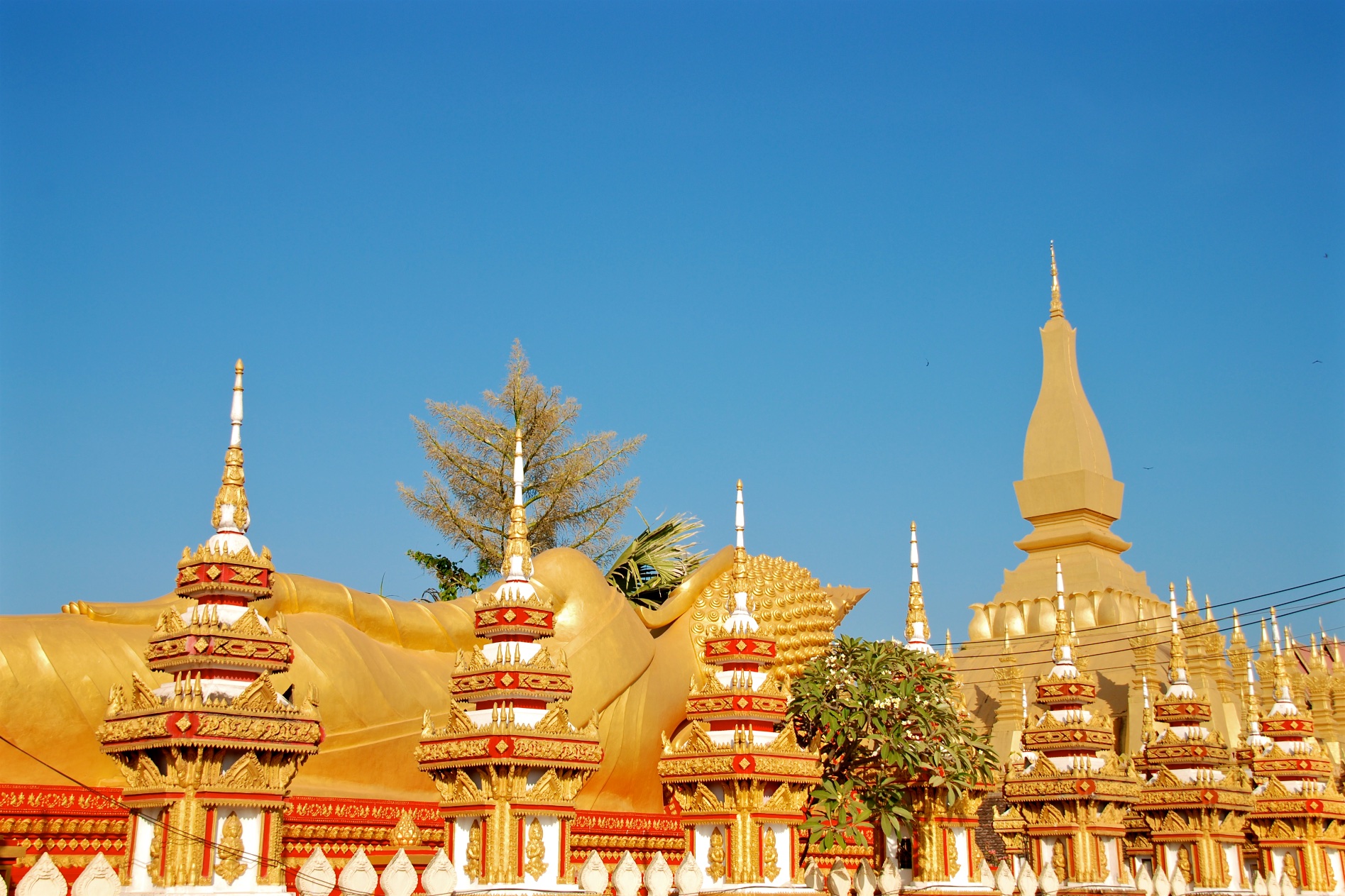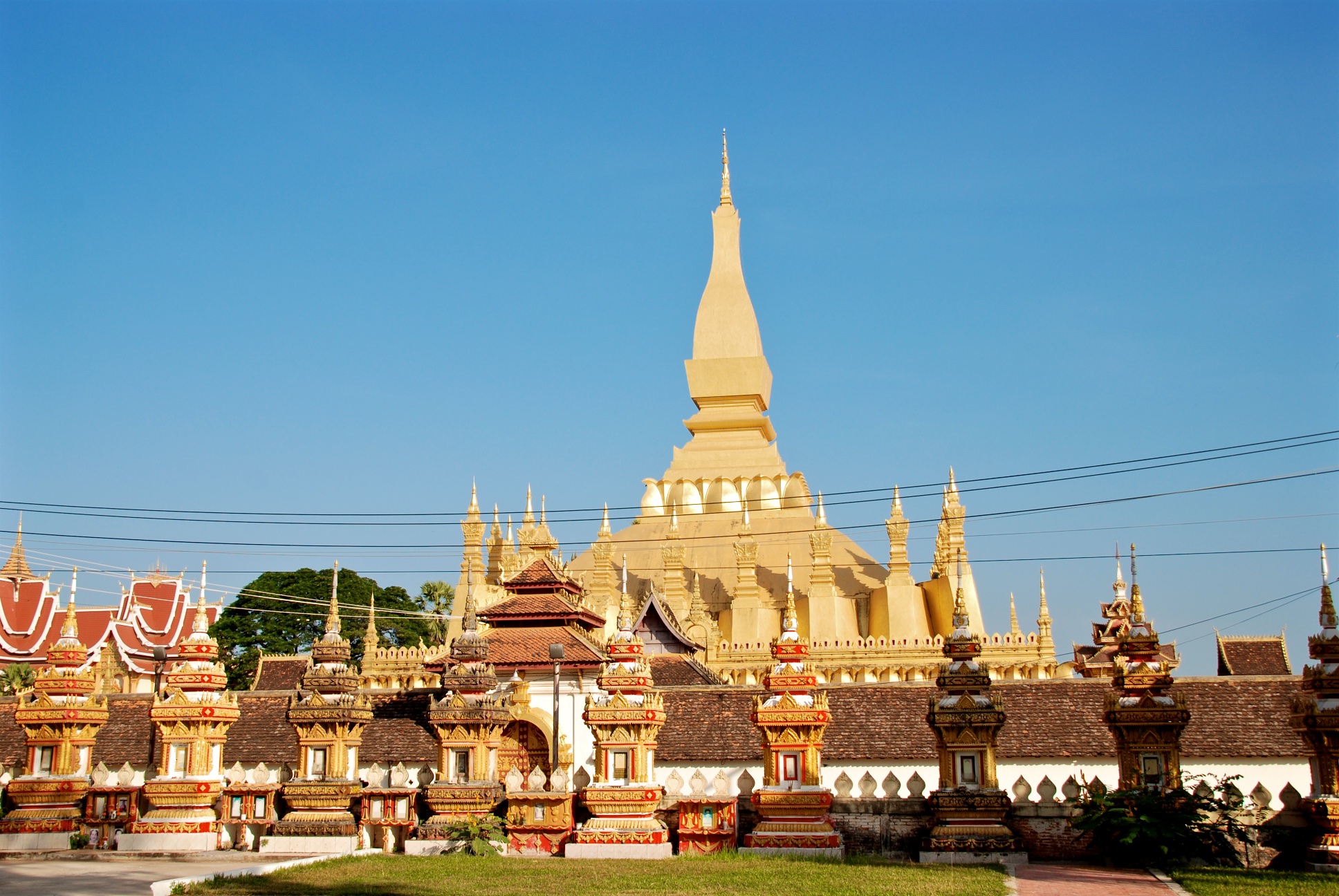 Am Donnerstagmorgen bin ich vor der Abfahrt noch mit dem TukTuk zum That Luang Tempel gefahren, dem wichtigsten Tempel in Vientiane.