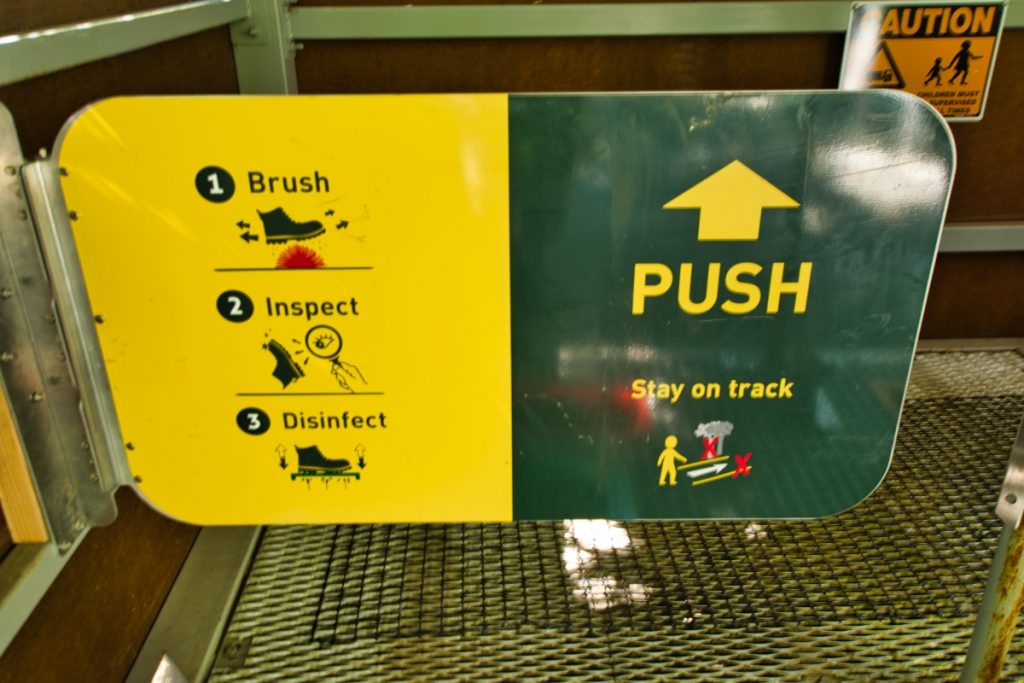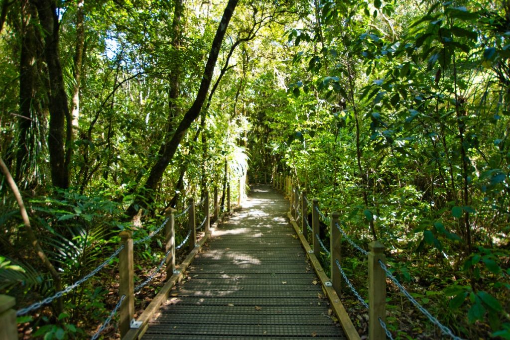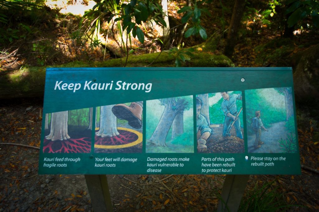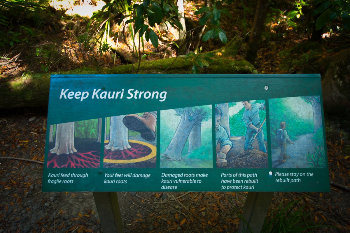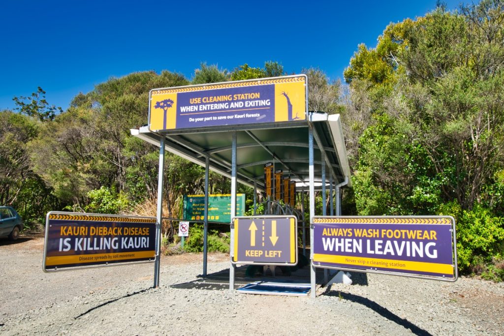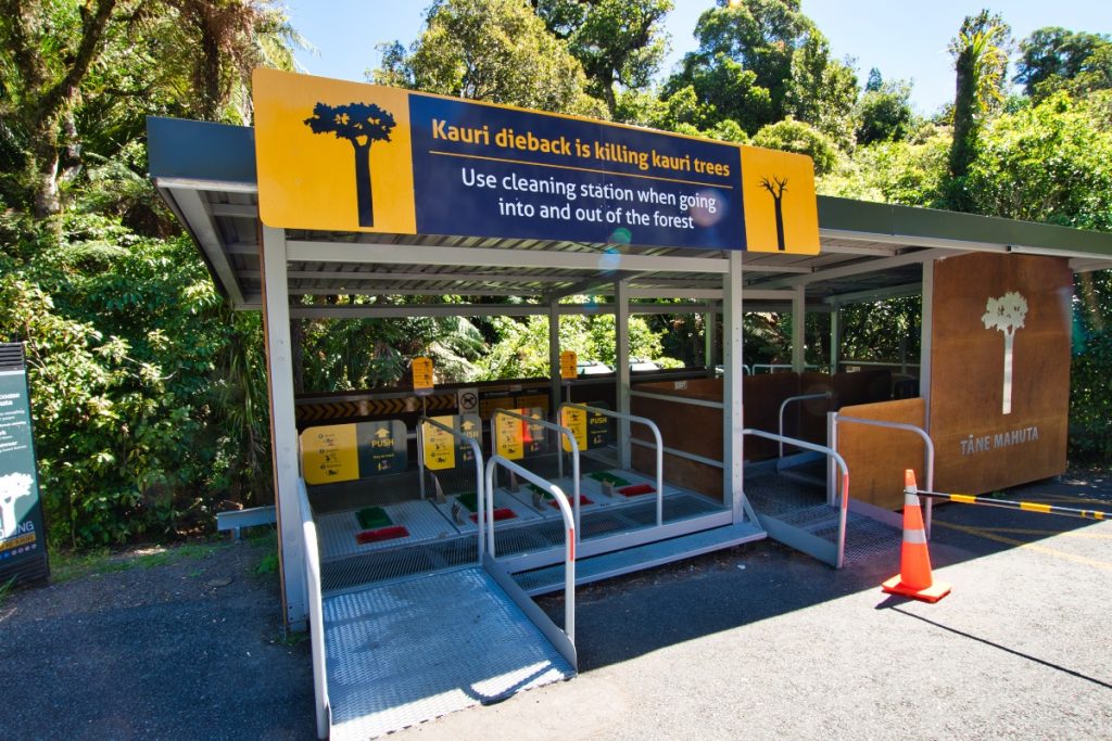 Auch hier musste man sich wieder die Schuhe säubern und desinfizieren, bevor man den Wald betreten durfte. Kauri Dieback muss ein ganz massives Problem sein – sonst würde man sicher nicht so einen Aufwand betreiben.