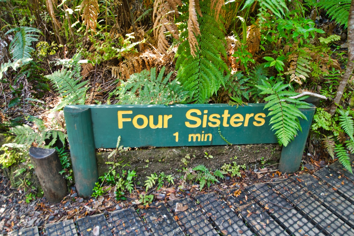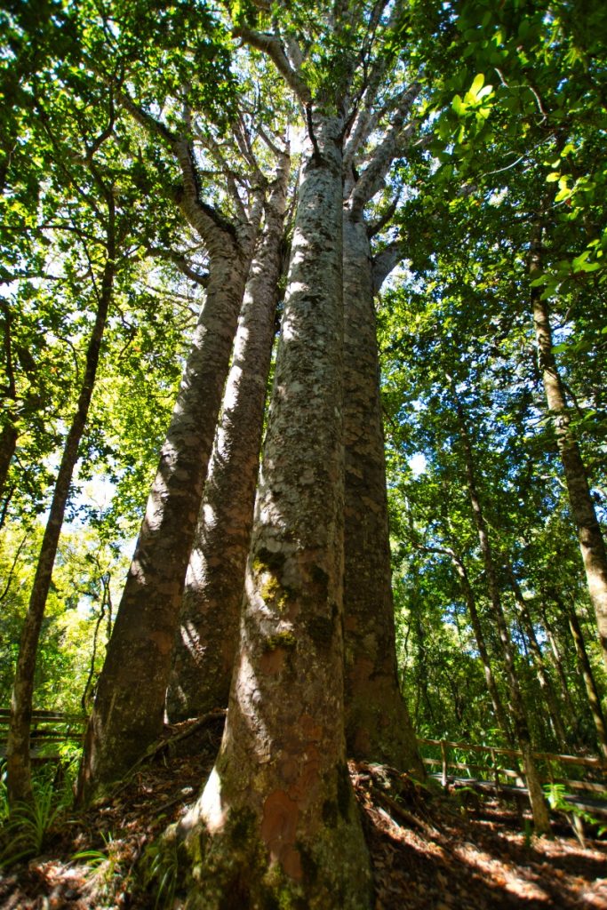 Von Tane Mahuta waren es mit dem Auto nur ein paar Minuten bis zum Parkplatz für die Kauri Walks. An dieser Stelle kann man die sogenannten Four Sisters und Te Matua Ngahere, den Kauri-Baum, der mit mehr als 16 Metern den größten Umfang hat, ansehen. Ich habe mir an dieser Stelle allerdings nur die Four Sisters, eine Gruppe von vier eher schlanken Kauri-Bäumen, angeguckt.