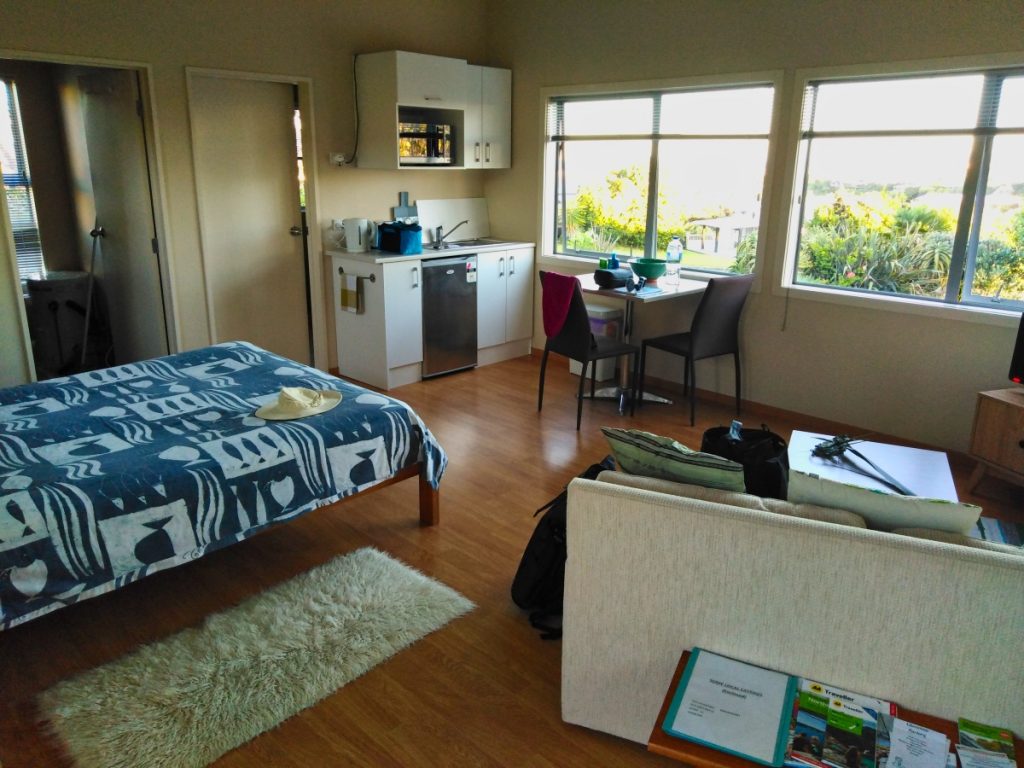 Von den Kaiiwi Lakes bin ich dann bis nach Mangawhai Heads durchgefahren. Meine Gastgeberin war nicht anwesend, als ich ankam, aber sie hatte mir einen Zettel mit dem Hinweis, dass der Schlüssel in der Tür stecke, hingelegt und so klappte der „Check-In“ auch ganz gut.