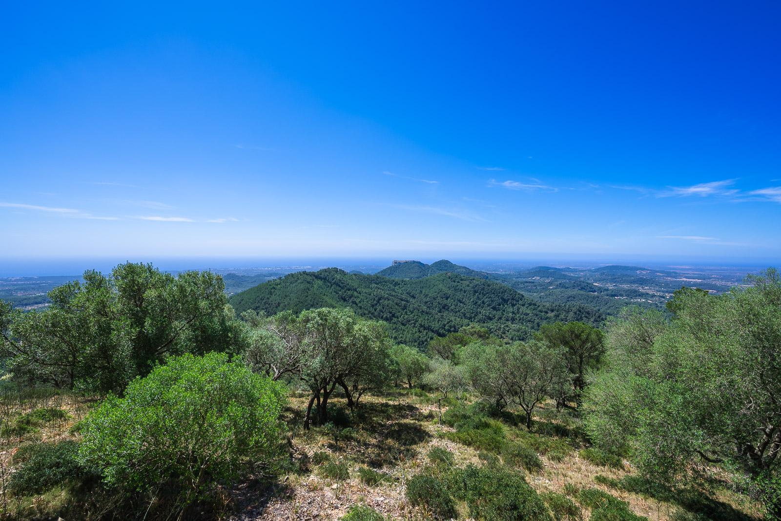 Montags haben wir einen Ausflug zum nahegelegenen Puig de Sant Salvador gemacht, den wir von unserer Terrasse aus sehen können. Nachdem wir unser Auto abgestellt hatten, sind wir zu unserer ersten Wanderung auf Mallorca gestartet. Das nachfolgende Bild ist am Start des Wanderweges aufgenommen und zeigt rechts im Bild den Puig de Sant Salvador, auf den wir hinauf gewandert sind.