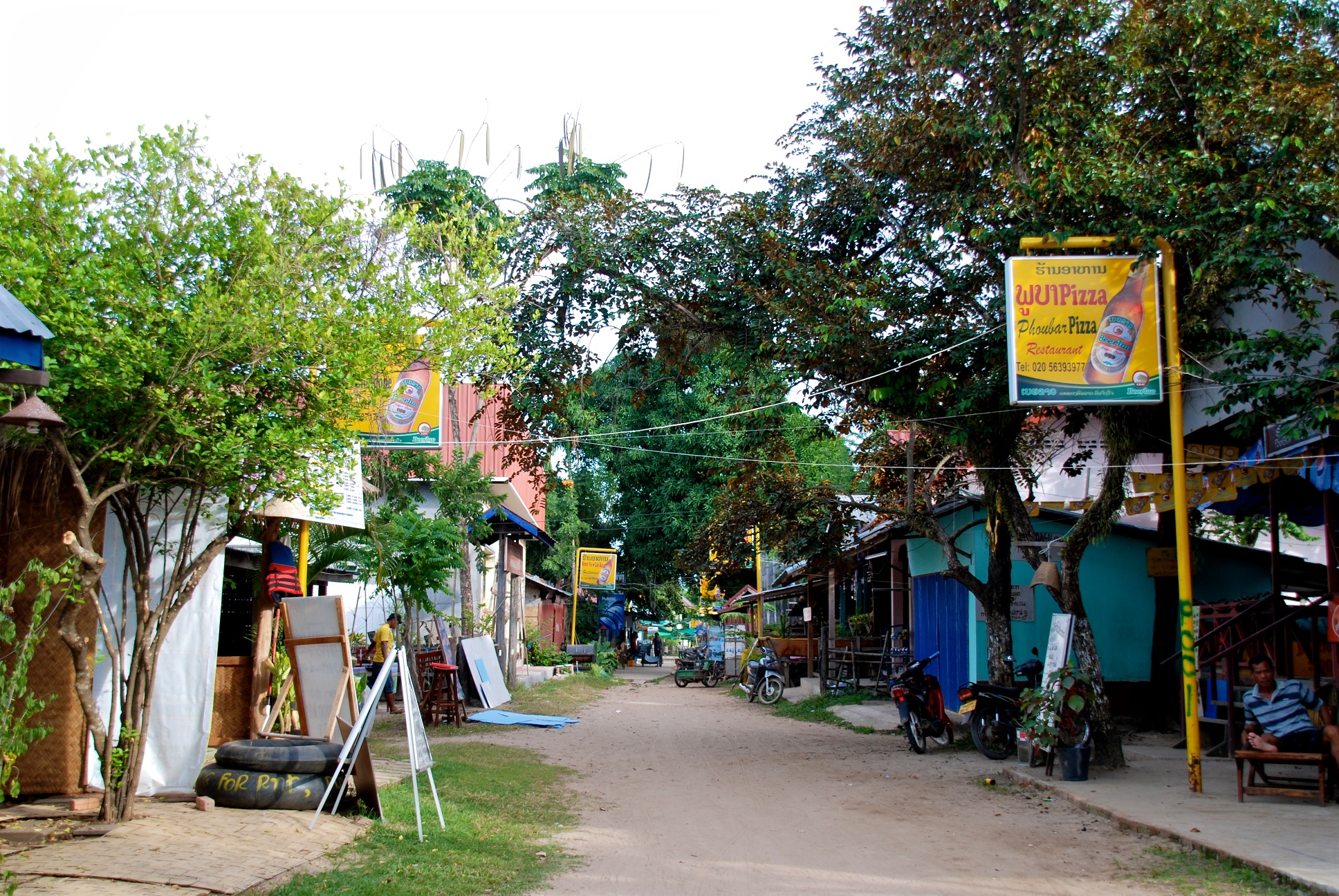 Von Wat Phou sind wir dann allerdings ohne größere Pausen bis Ban Nakasan durchgefahren und von dort mit dem Boot weiter nach Don Det. Auf Don Det habe ich dann erstmal einen Spaziergang zu dem Guesthouse gemacht, in dem ich eigentlich übernachten wollte, gegen das ich mich aber letzten Endes zugunsten einer Übernachtung in dem Guesthouse, wo auch der Rest der Gruppe untergekommen war, entschieden hatte. Der deutsche Besitzer war sehr nett und obwohl ich das Zimmer abgesagt hatte, hat er mich auf einen guten laotischen Kaffee eingeladen und wir haben uns fast eine Stunde über das Leben auf der Insel unterhalten.