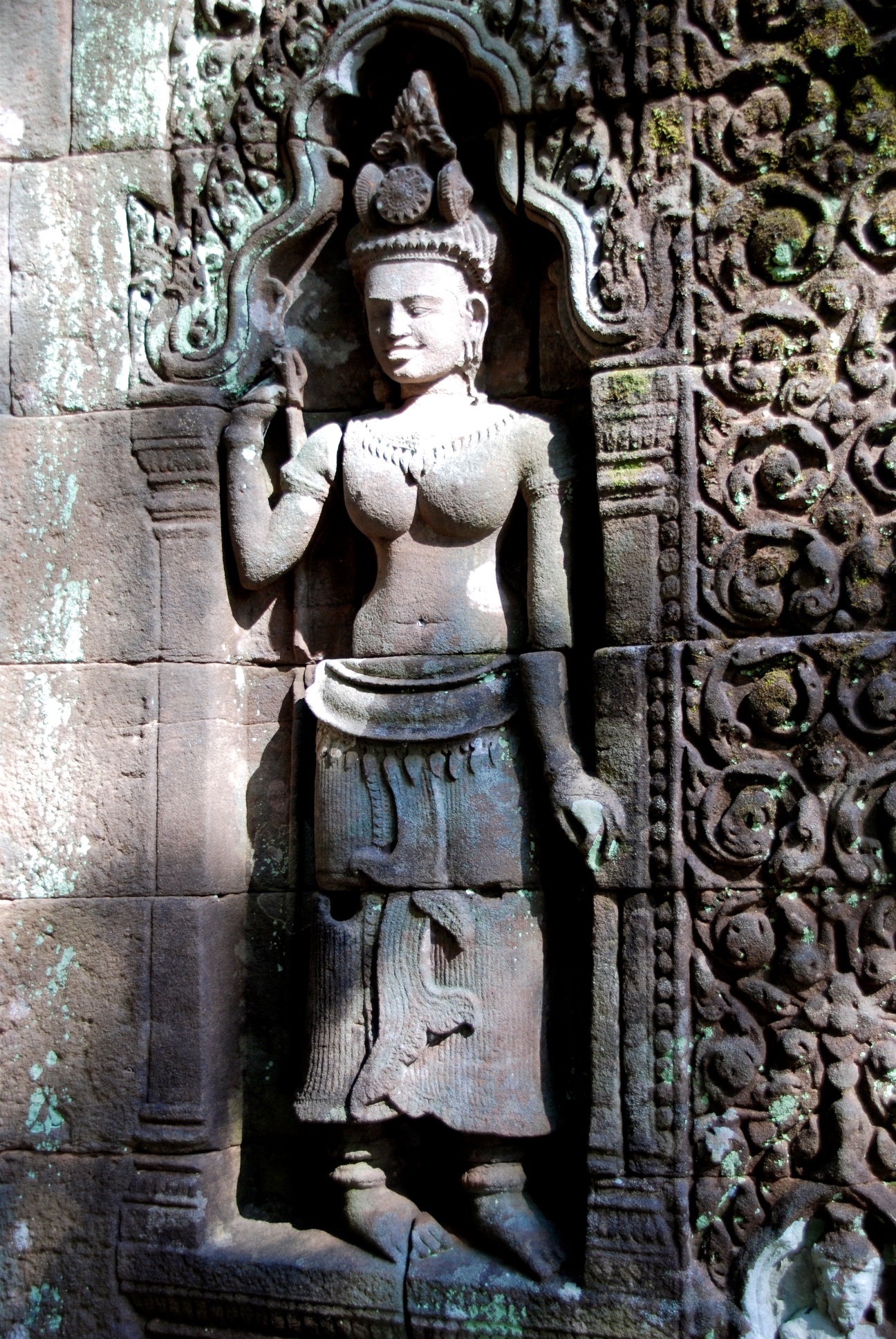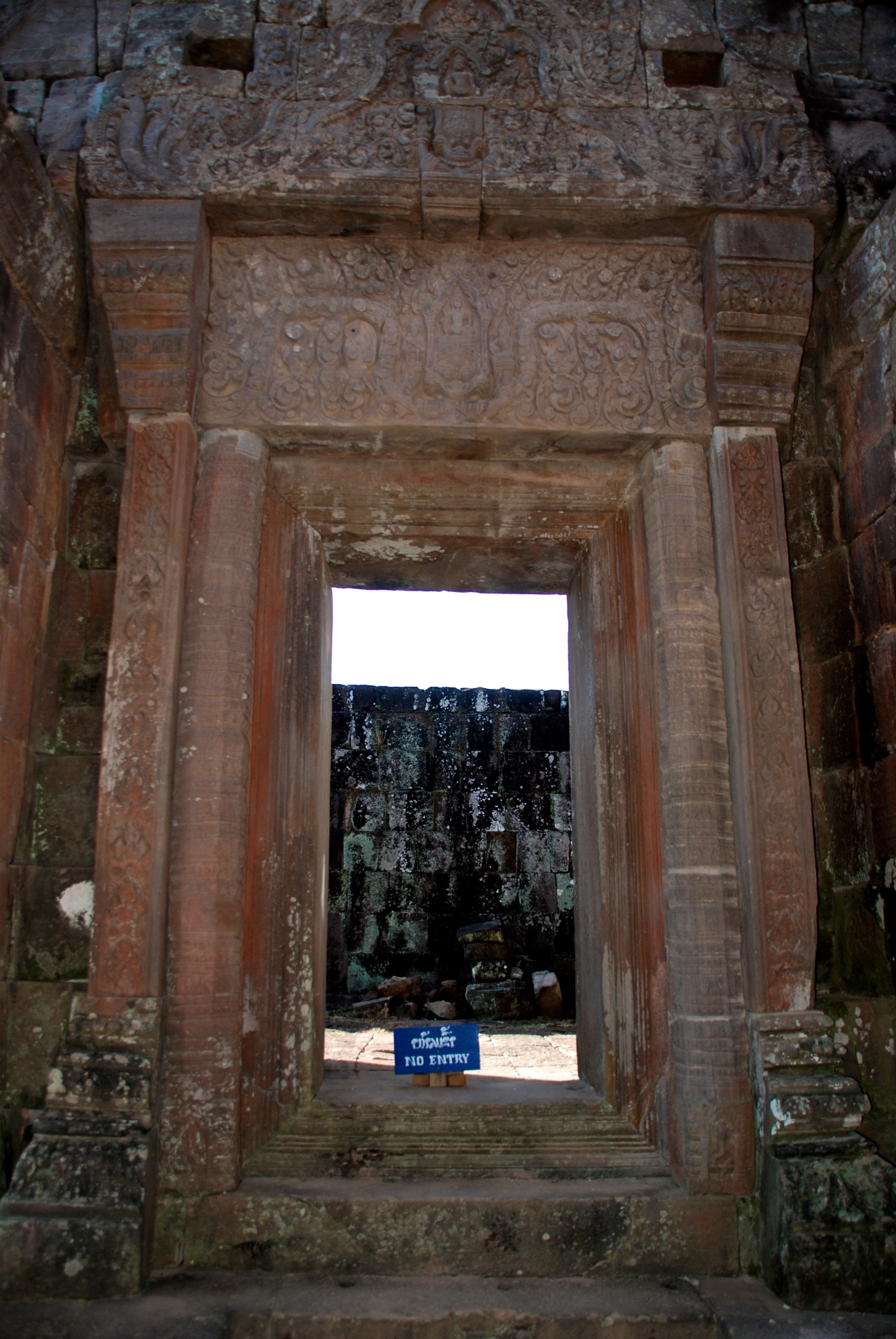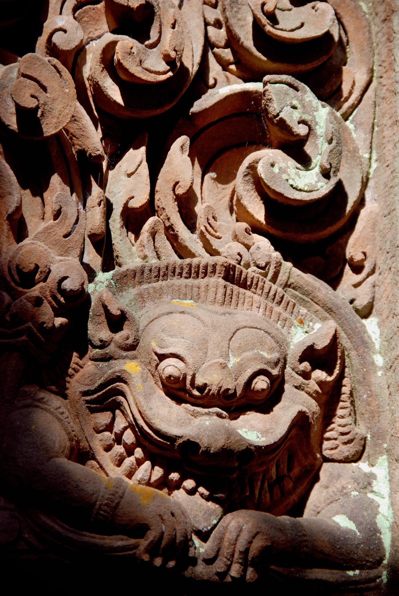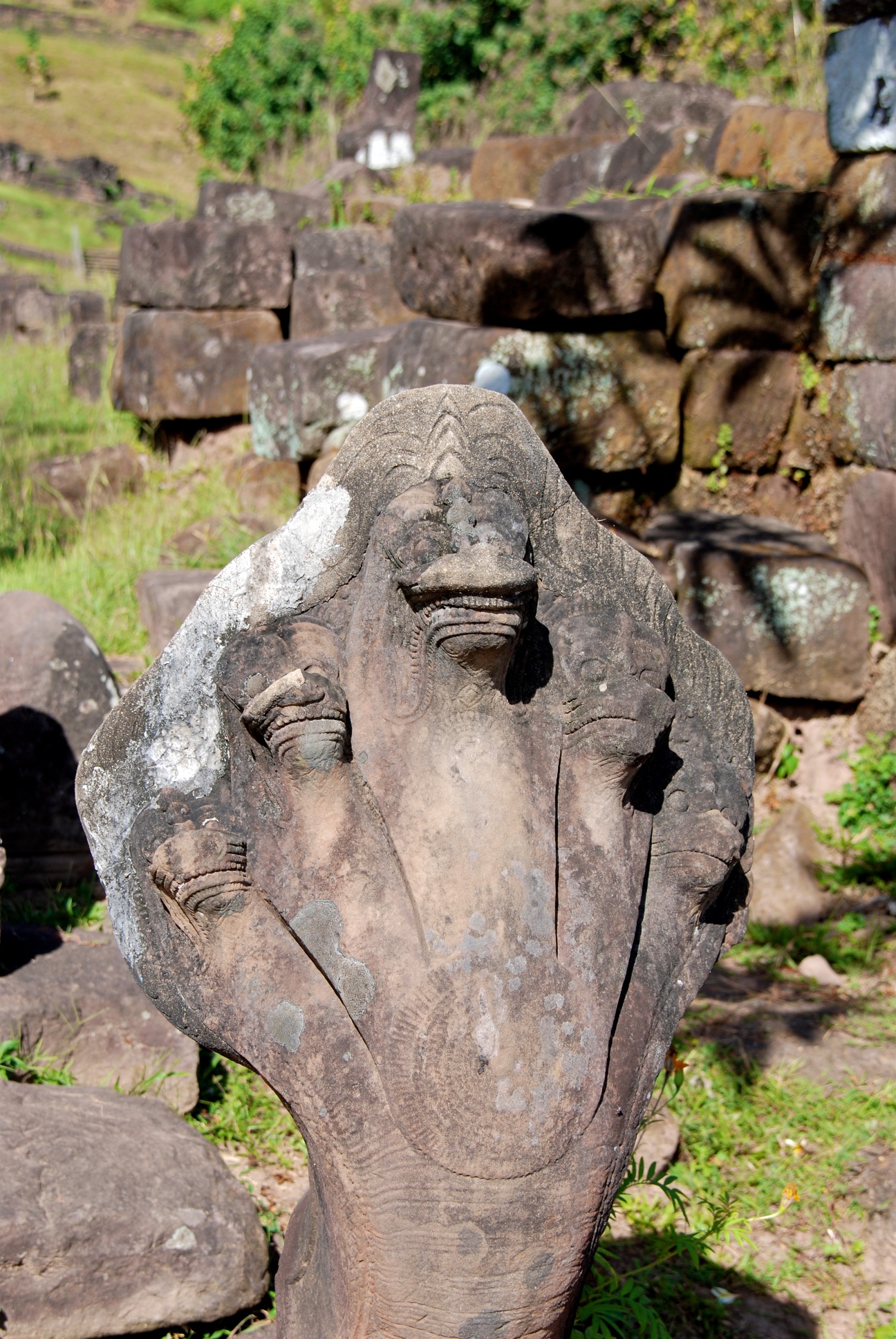 Dieser stammt aus der Zeit als dieser Teil von Laos – wie auch die Region um Angkor Wat in Kambodscha – zum Khmer-Reich gehörte. Die Reliefs ähneln sehr denen, die ich letztes Jahr in Angkor gesehen habe und zeigen in erster Linie hinduistische Götter, u.a. Indra, den Gott des Sturmes und des Regens auf seinem Reittier, dem weißen, drei köpfigen Riesenelevanten Airavata.