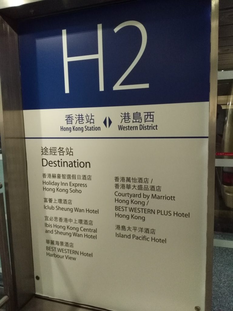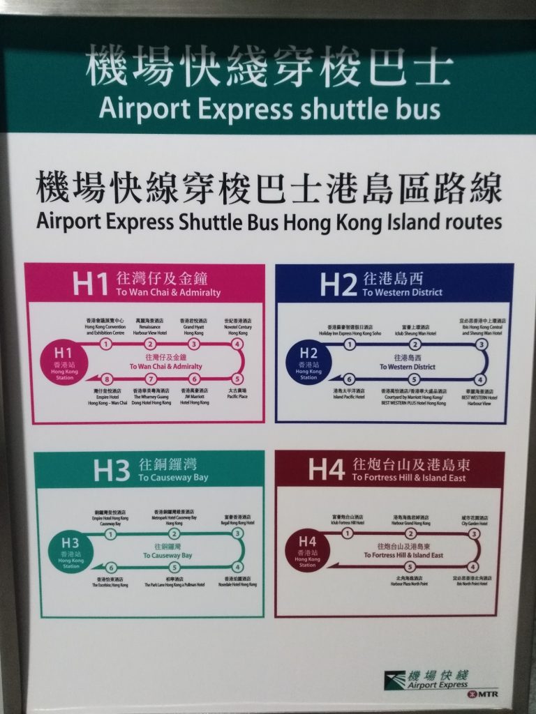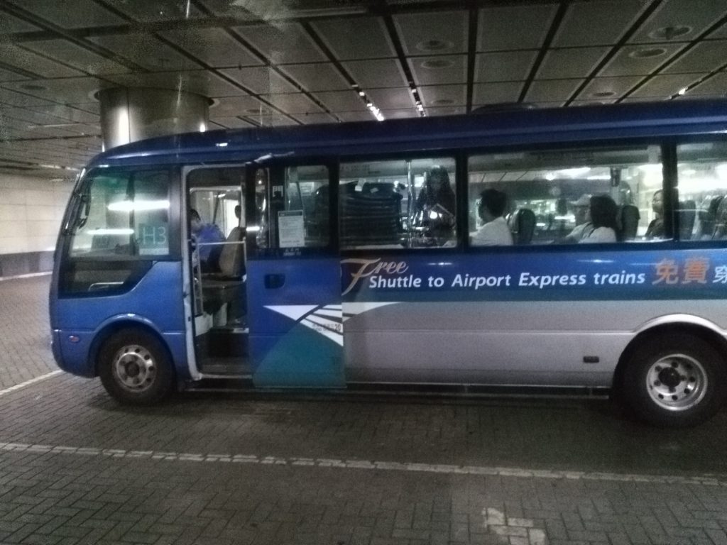Da mein Hotel auf Hongkong Island selbst lag, bin ich auch dort aus dem Airport Express ausgestiegen. Im Internet hatte ich vorher recherchiert, dass es von der Airport Express-Haltestelle aus Minibusse zu verschiedenen Hotels gibt, die man kostenlos nutzen kann, wenn man mit dem Airport Express gefahren ist. Einer dieser Busse fuhr auch in die Nähe meines Hotels.