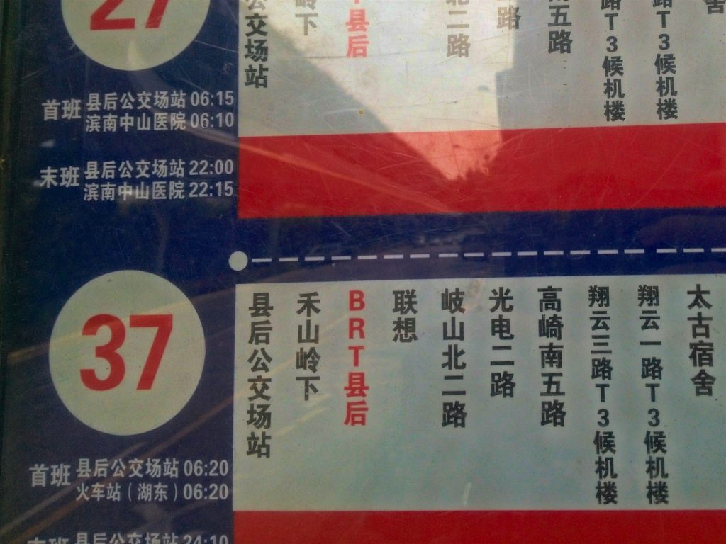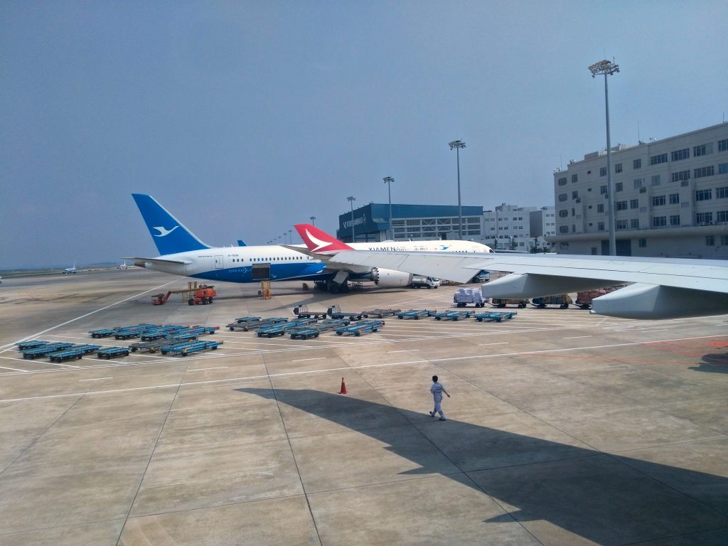 Mein Flug von Xiamen nach Hongkong startet um 12:05 Uhr, sodass ich mich gegen 9:30 Uhr mit meinem Gepäck auf den Weg zum Flughafen gemacht habe. Zunächst bin ich wieder zum „Hochbus“ gelaufen und dann von dort vier Stationen mit der Linie 1 gefahren, bevor ich ausgestiegen bin, um den Rest der Strecke mit dem „normalen“ Bus zu fahren. Leider hatte Google Maps mir zwar verraten, dass ich vier Stationen mit der Linie 1 fahren und dann umsteigen musste, aber leider nicht, in welchen Bus ich danach einsteigen musste. Die Haltestelle habe ich trotzdem relativ schnell gefunden. Leider fuhren an der Haltestelle allerdings eine ganze Reihe verschiedener Busse ab und es hätte sicher eine Weile gedauert, bis ich den richtigen Bus gefunden hätte. Aber auch hier hatte ich wieder Glück. Eine junge Chinesin sprach mich auf Englisch an und fragte, wo ich hin wolle. Ich erklärte ihr, dass ich zum Flughafen wolle. Sie sagte mir, dass ich den Bus Nummer 27 oder 37 nehmen müsse. Als dann einer dieser beiden Busse kam, stieg ich ein – und meine chinesische Helferin ebenfalls. Im Bus verriet sie mir dann noch, dass es zwei Haltestellen am Flughafen gebe und ich an der zweiten aussteigen müsste. Besser hätte es nicht laufen können.