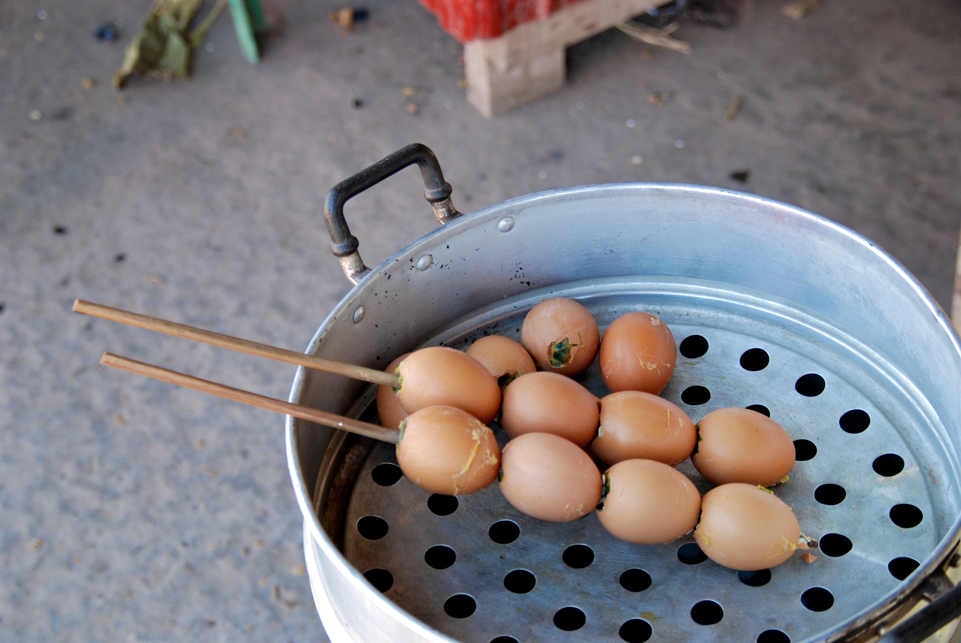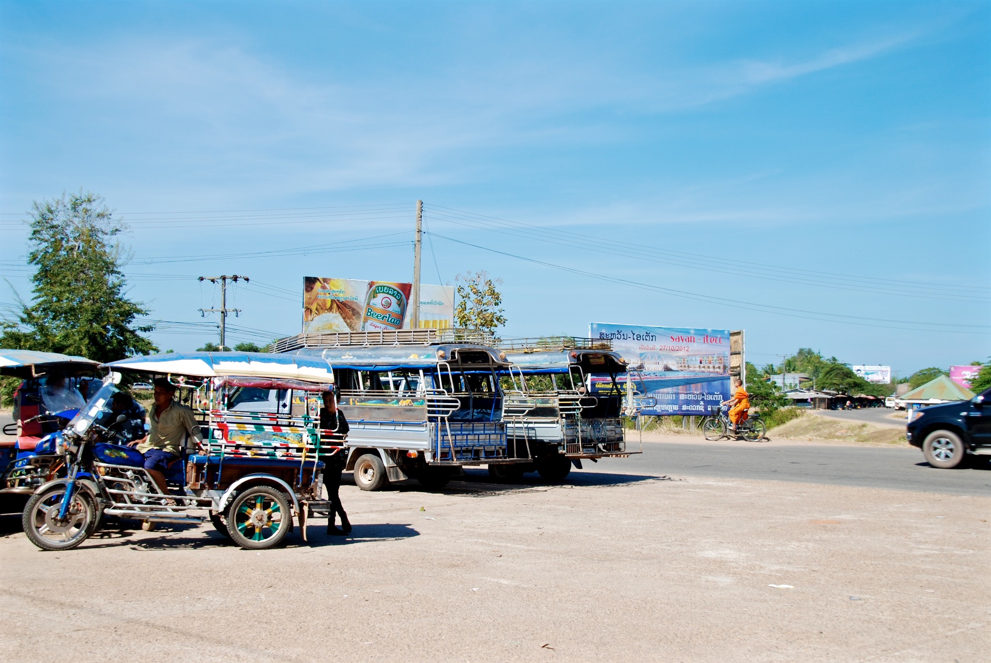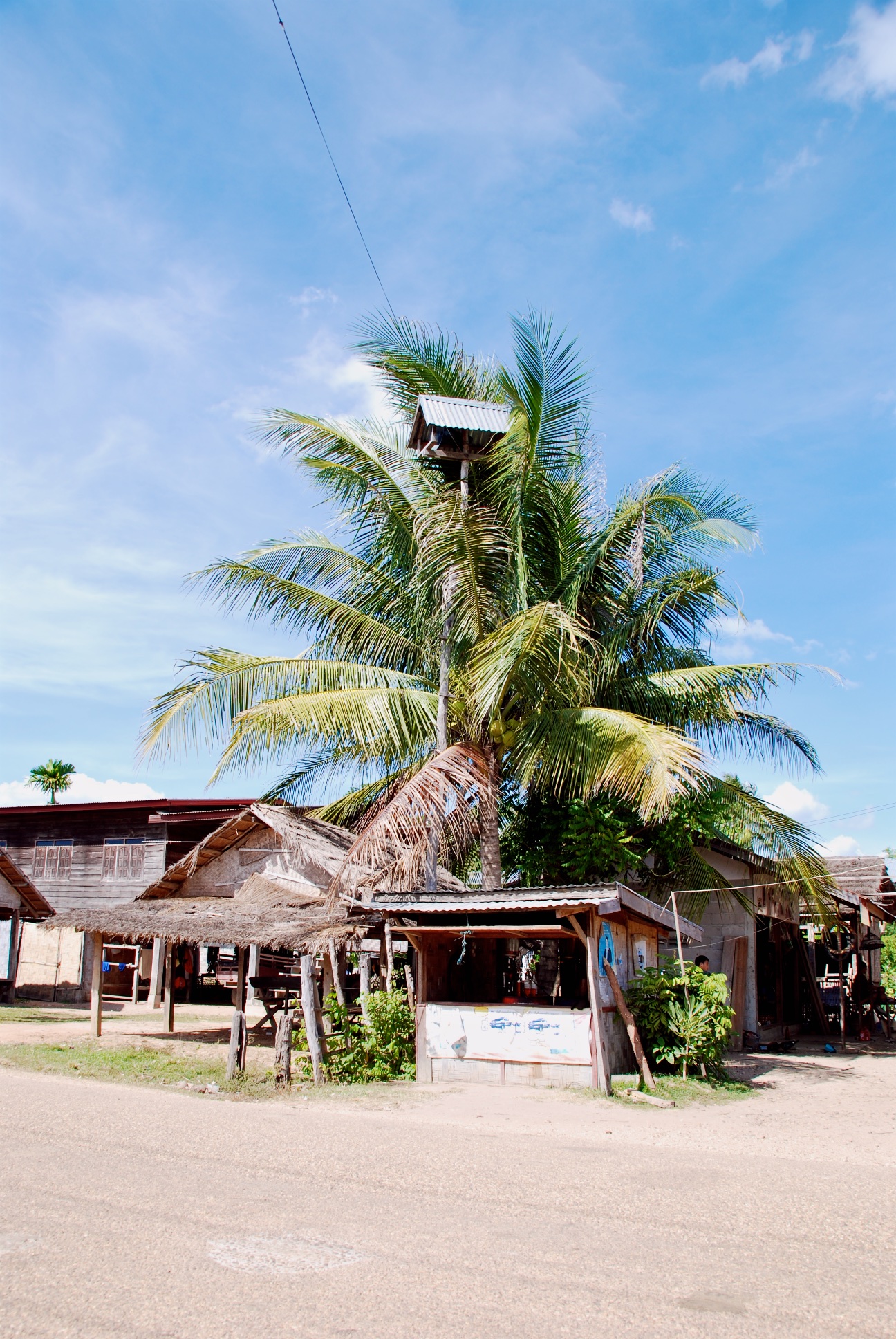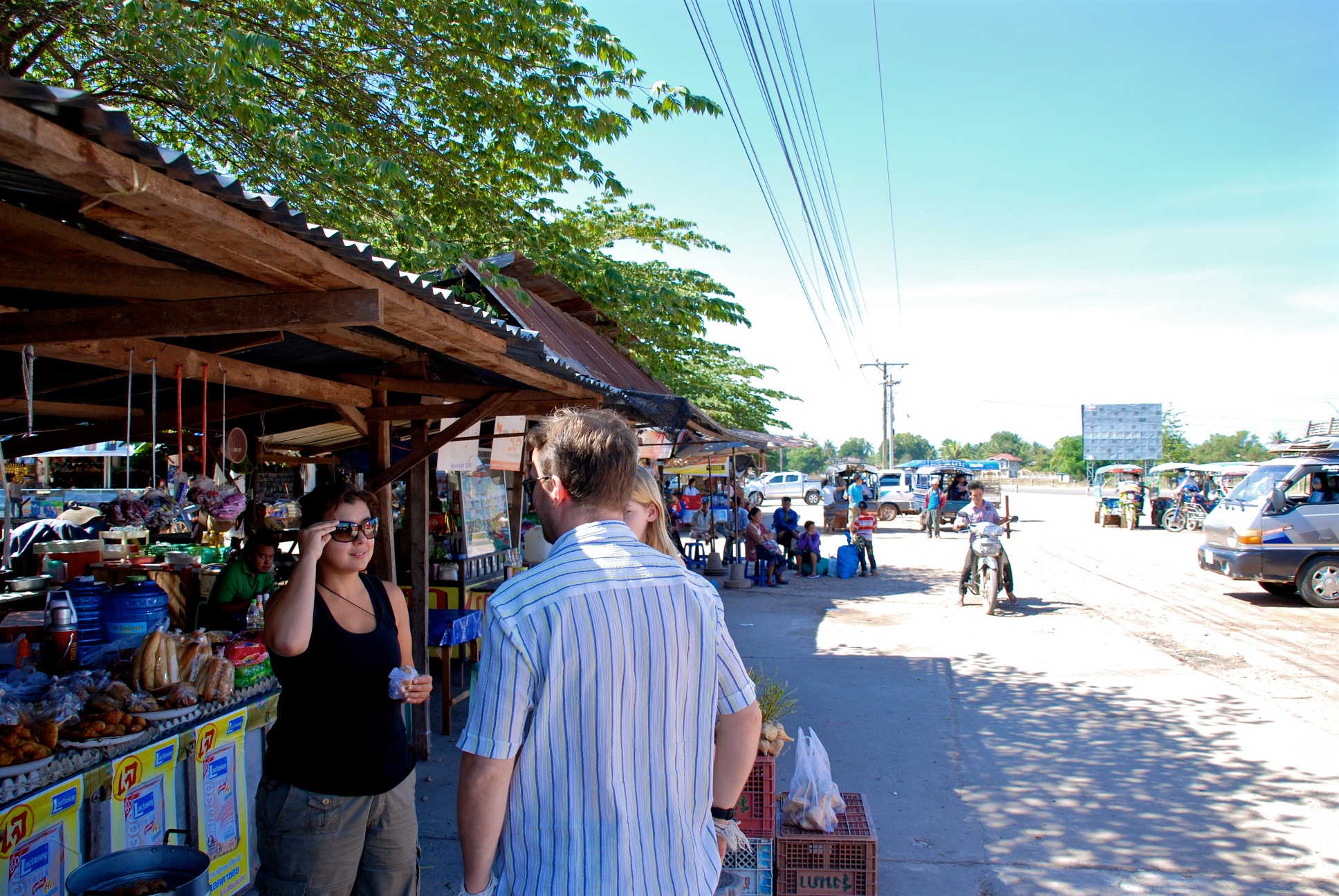 Am Sonntag haben wir uns auf den Weg zu unserem nächsten Homestay gemacht. Dafür haben wir zunächst mitten in der laotischen Pampa angehalten, damit unser Guide die Zutaten für’s Abendessen und noch ein paar Bananen kaufen konnte. Als der Guide mit einer Plastiktüte voll lebender Frösche wiederkam, war allerdings nur unsere französische Mitfahrerin Audrey begeistert!