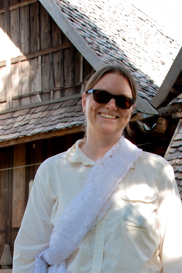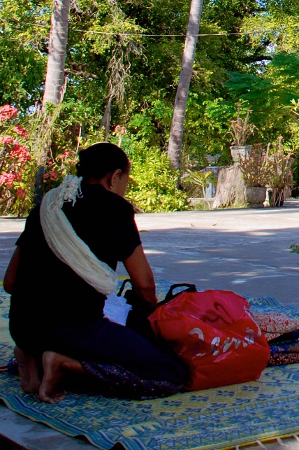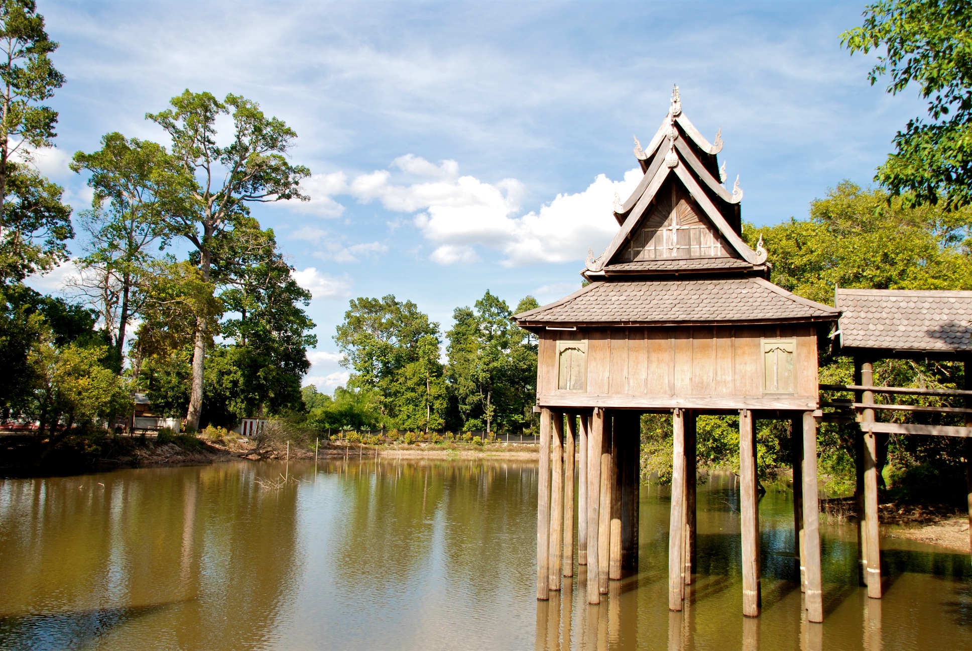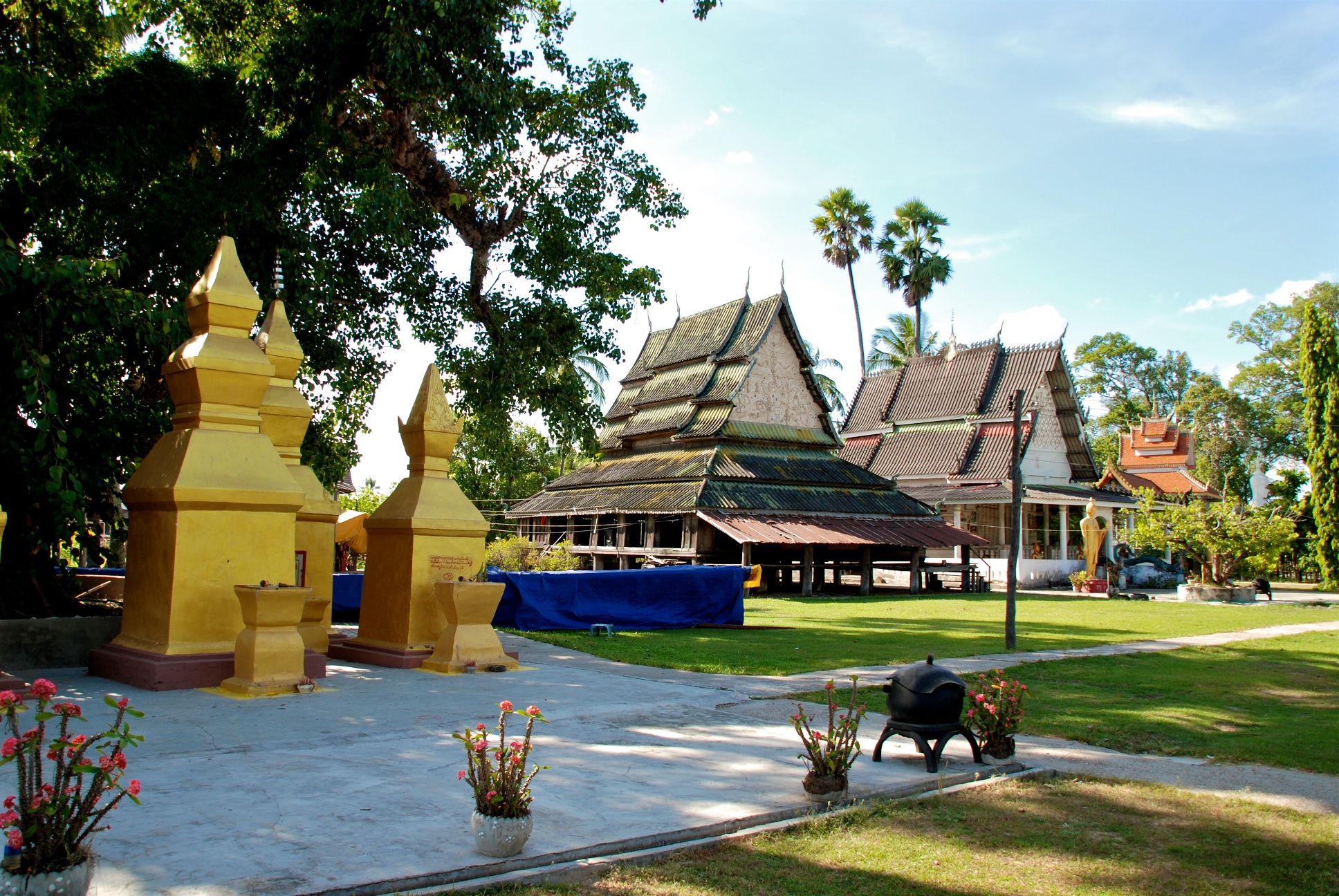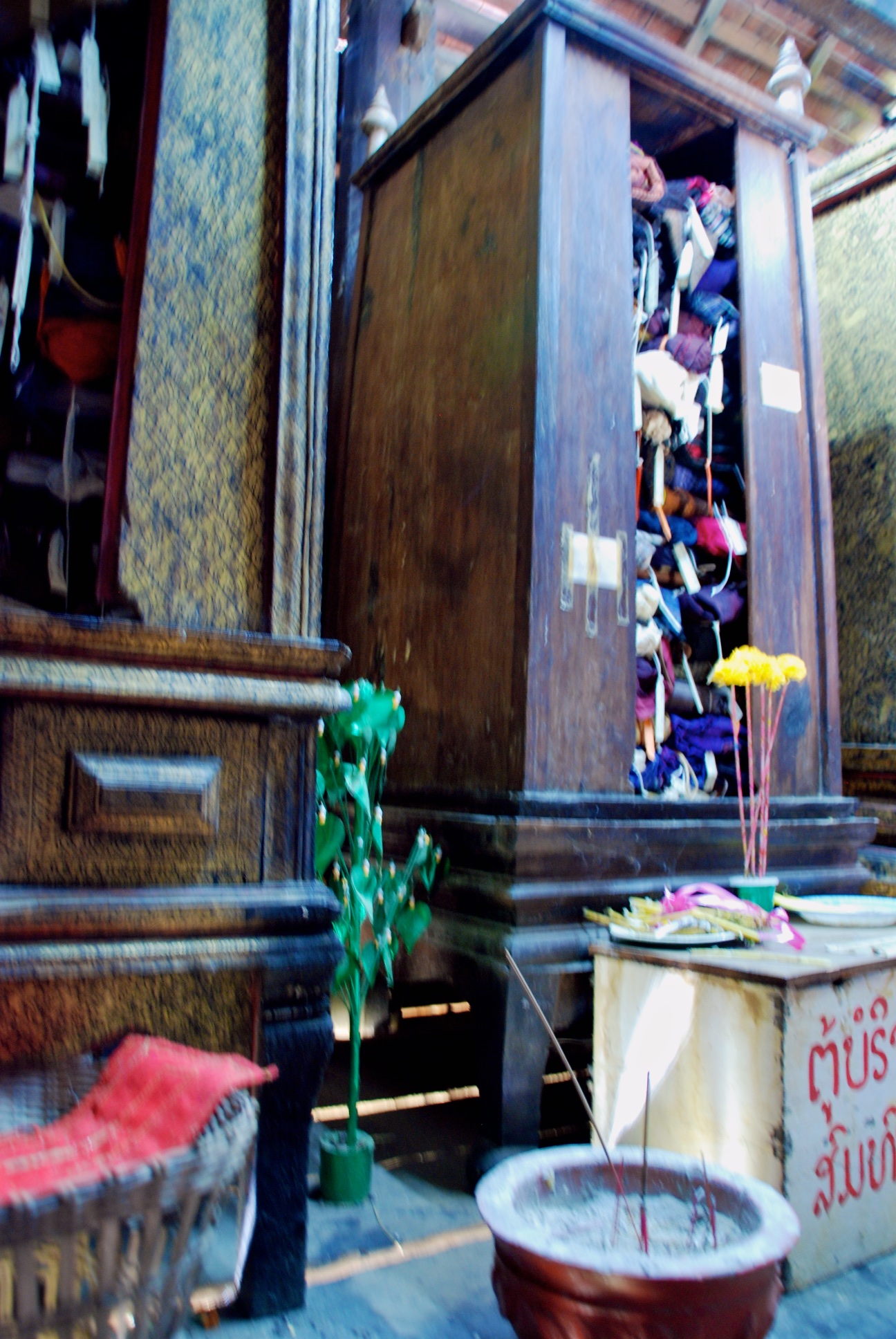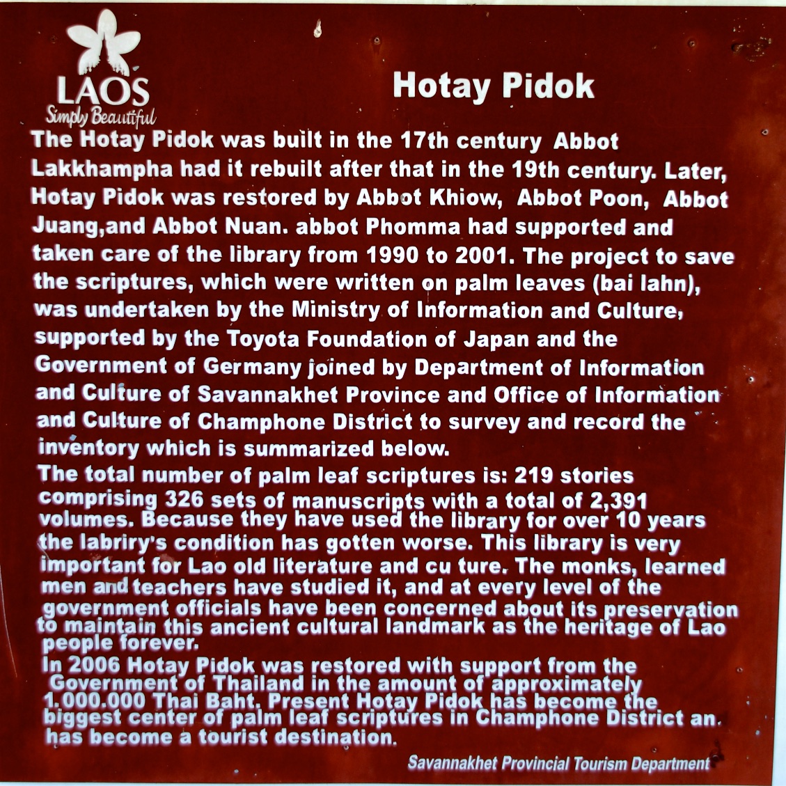 Ein kleines Highlight war dann der Besuch des Nong Lam Chanh Tempels im gleichnamigen Dorf. Dort mussten wir uns erst alle traditionelle laotische Röcke anziehen und bekamen alle eine weiße Schärpe aus Spitze umgehängt, bevor wir uns die Bibliothek Hotay Pidok auf dem Tempelgelände ansehen durfte. Dort werden etwa 4000 auf Palmblättern geschriebene Texte aufbewahrt. Es handelt sich um eine der größten Bibliotheken dieser Art in Laos.