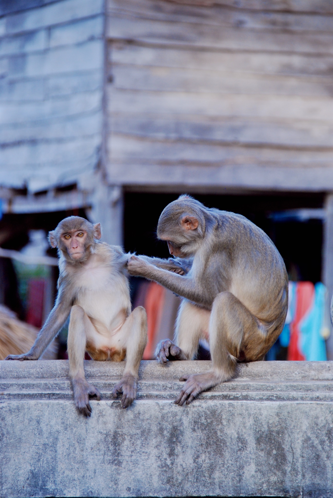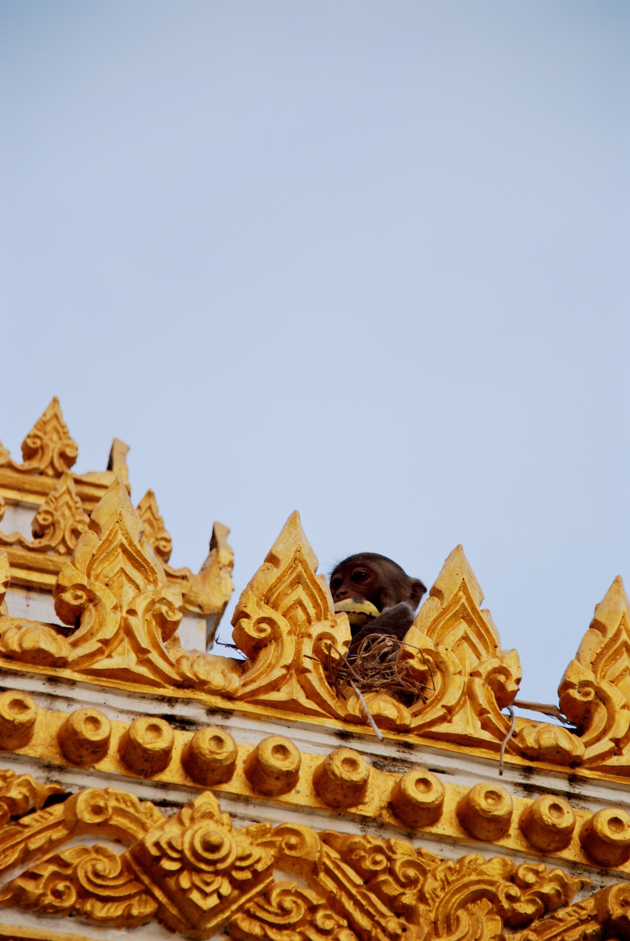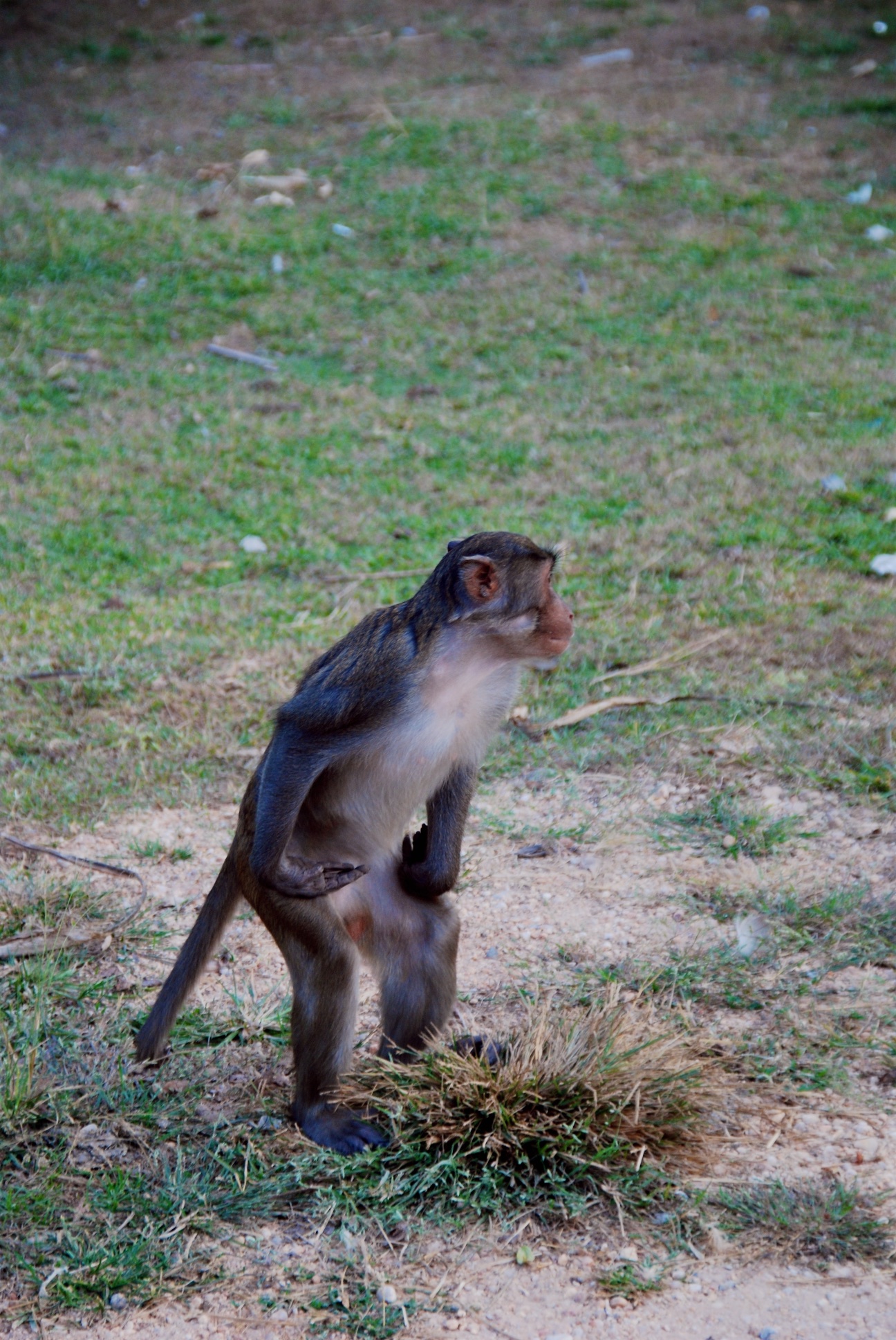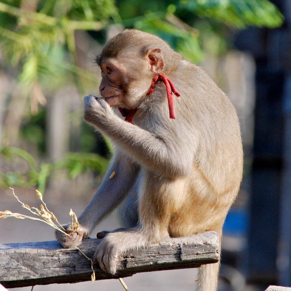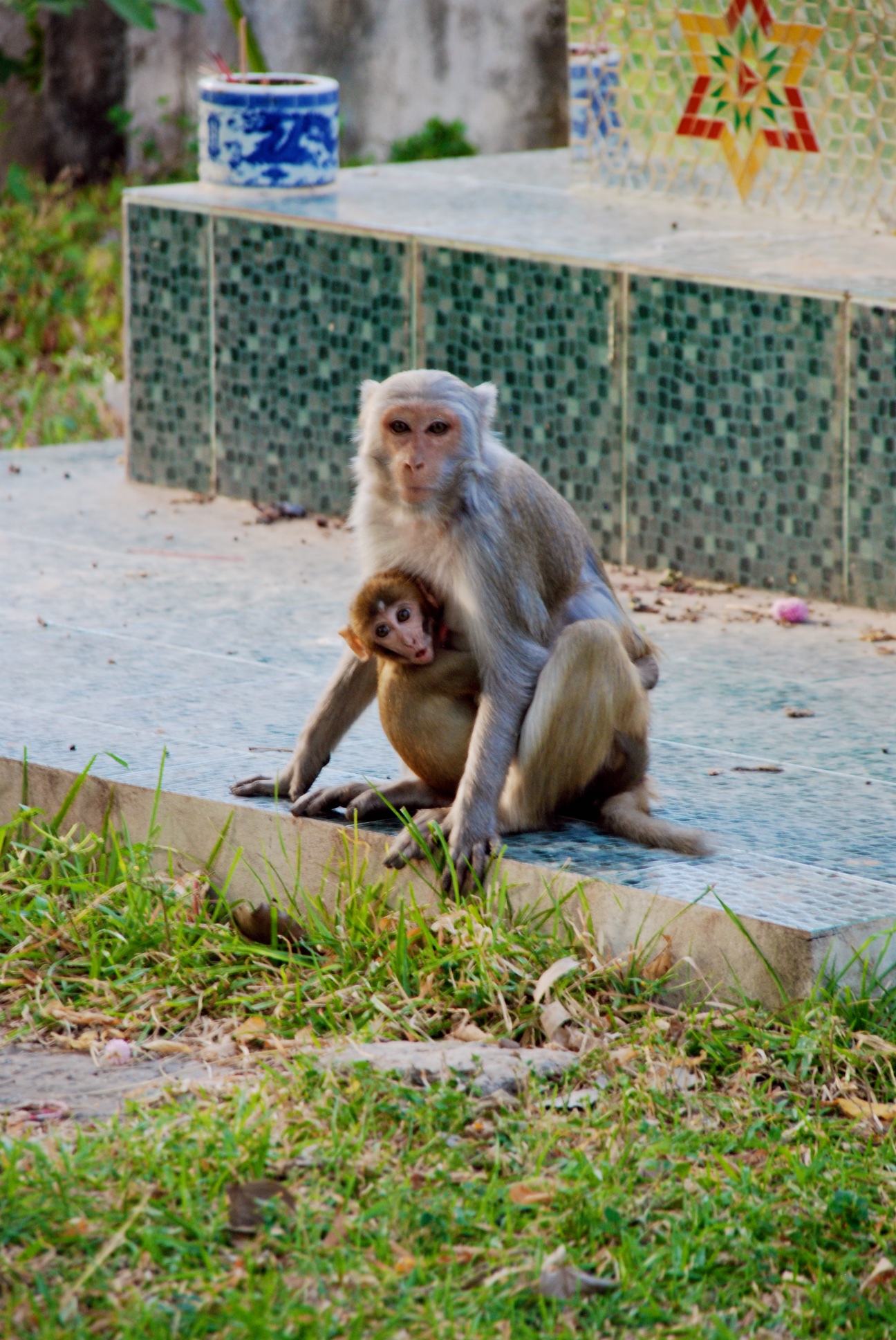 Vor dem Abendessen haben wir noch einen Spaziergang zum örtlichen Tempel gemacht, der außer von Mönchen auch noch von einer Horde Tempelaffen bewohnt wird. Für diese waren die morgens erworbenen Bananen gedacht. Ich habe mich allerdings zurückgehalten, weil ich keine Lust hatte, von einem übereifrigen Affen gebissen oder gekratzt zu werden. Dafür habe ich umso mehr fotografiert. Zum Tempel war uns eine ganze Schar Kinder gefolgt, die es wieder unwahrscheinlich lustig fanden, sich fotografieren zu lassen und anschließend ihr eigenes Gesicht auf dem Display zu sehen.