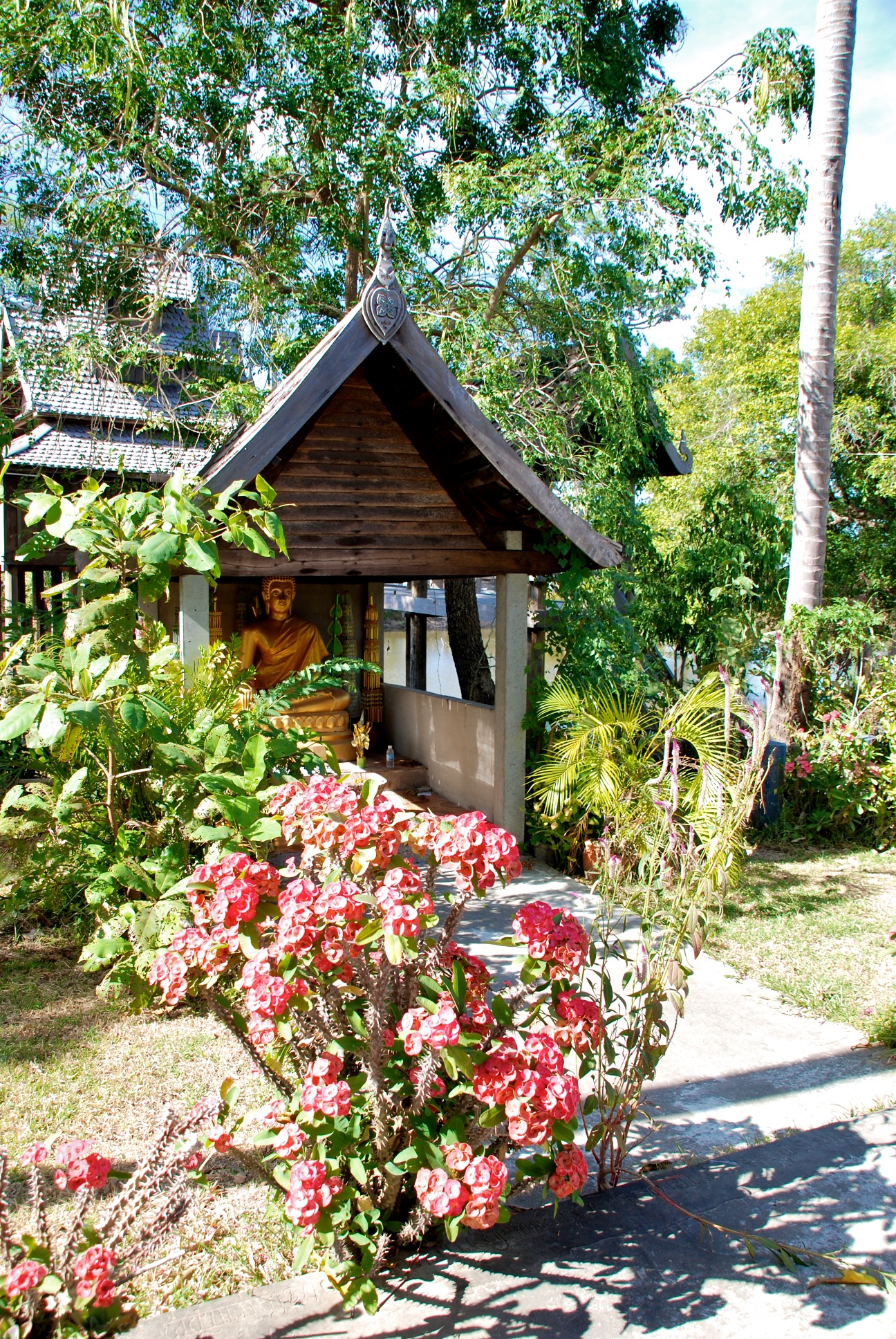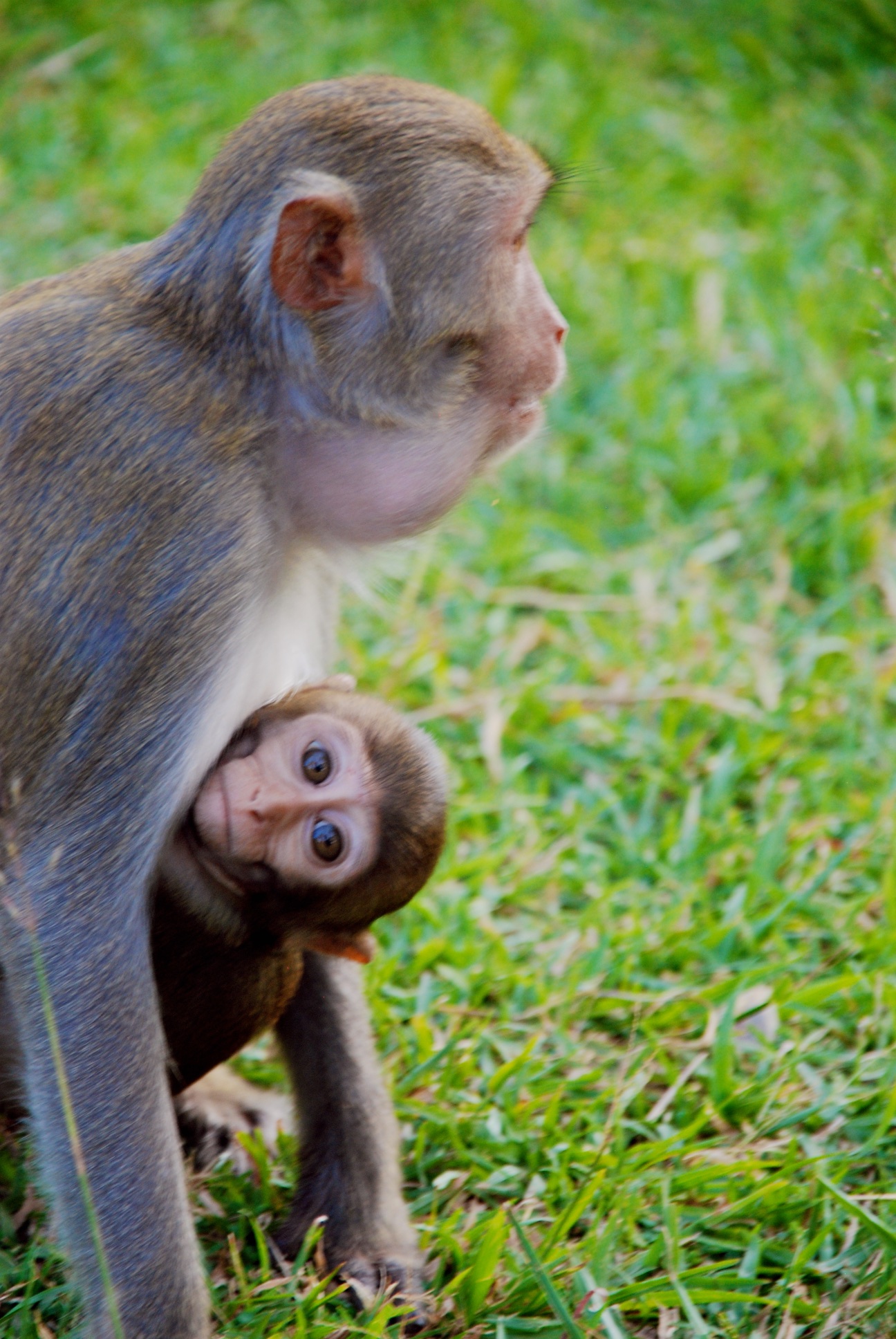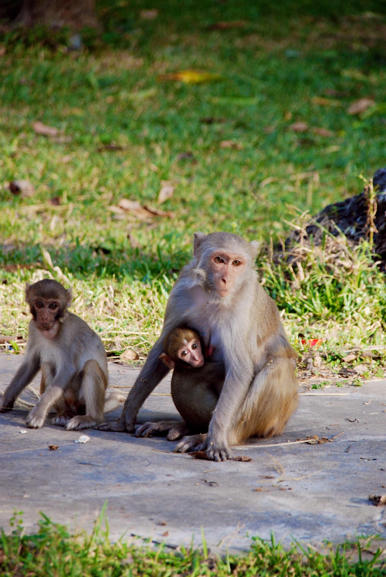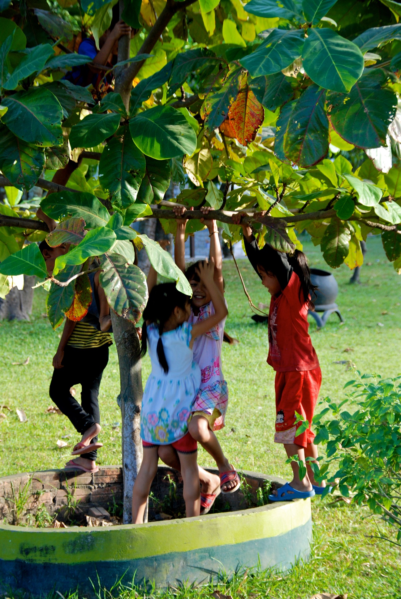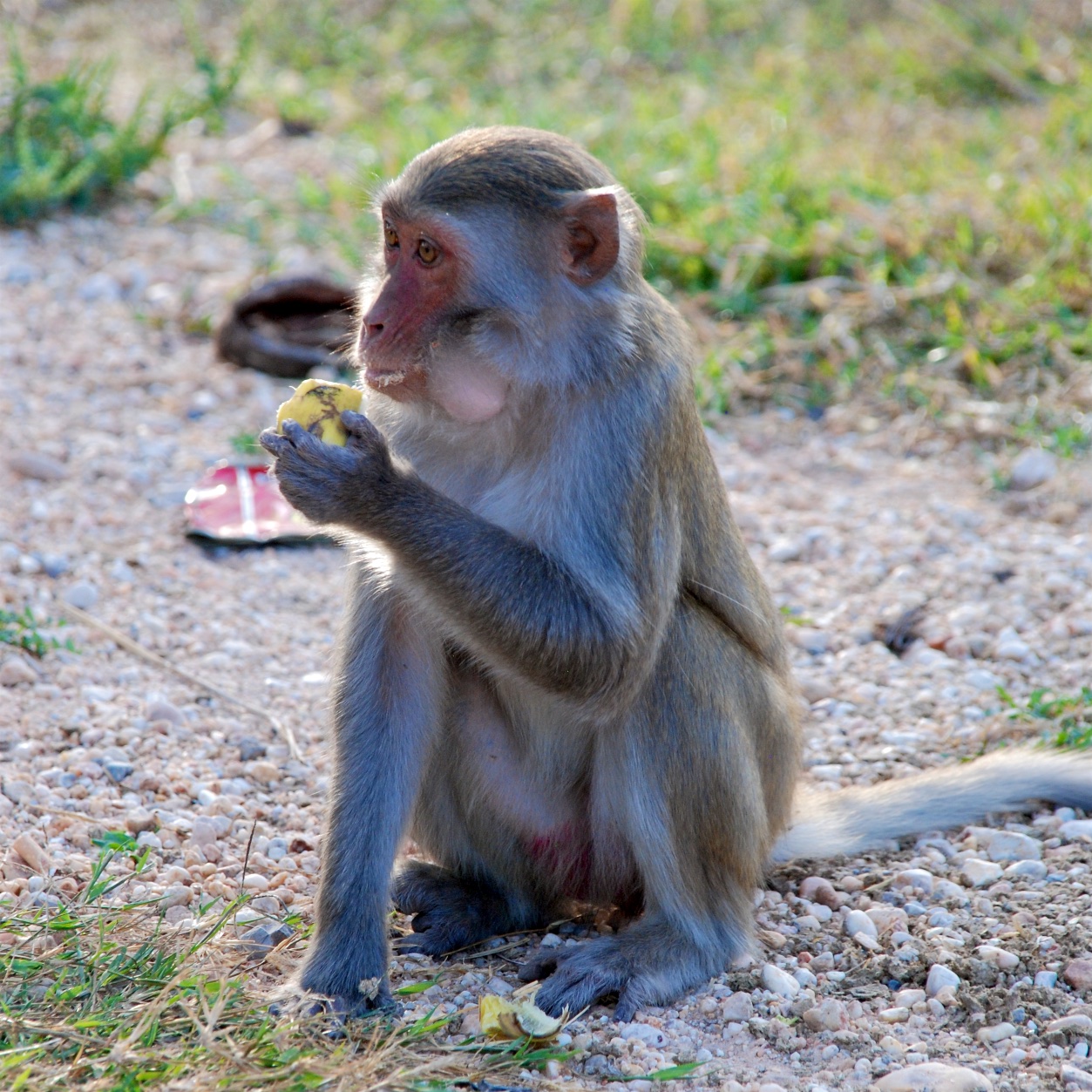 Vor dem Abendessen haben wir noch einen Spaziergang zum örtlichen Tempel gemacht, der außer von Mönchen auch noch von einer Horde Tempelaffen bewohnt wird. Für diese waren die morgens erworbenen Bananen gedacht. Ich habe mich allerdings zurückgehalten, weil ich keine Lust hatte, von einem übereifrigen Affen gebissen oder gekratzt zu werden. Dafür habe ich umso mehr fotografiert. Zum Tempel war uns eine ganze Schar Kinder gefolgt, die es wieder unwahrscheinlich lustig fanden, sich fotografieren zu lassen und anschließend ihr eigenes Gesicht auf dem Display zu sehen.