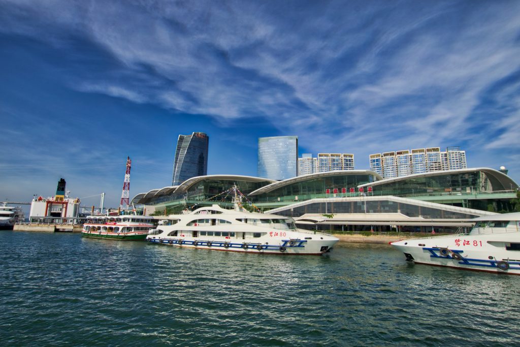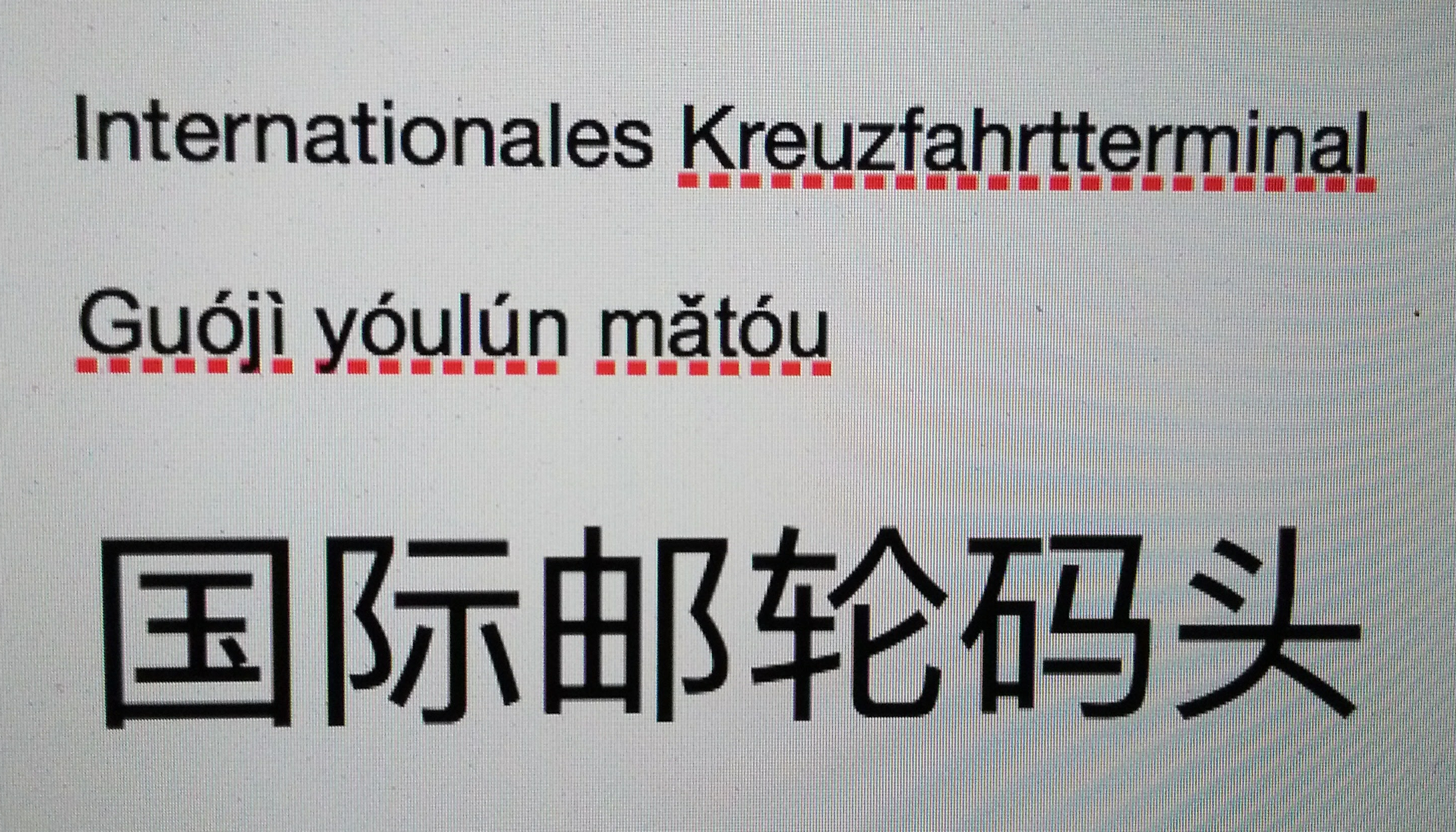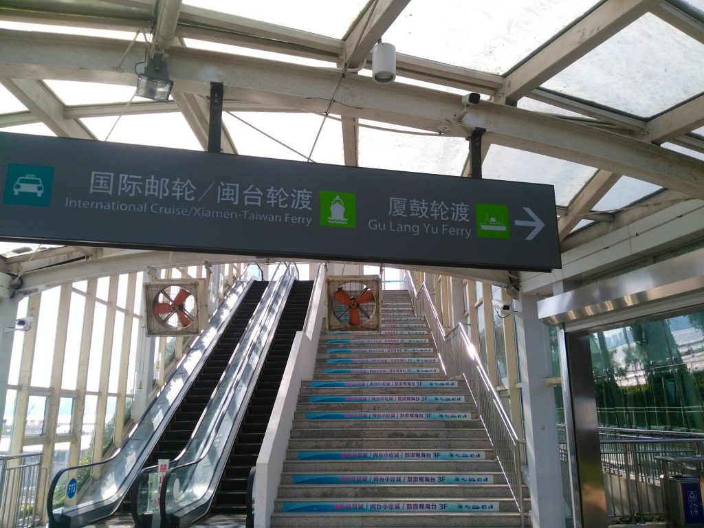 Nach meinem Besuch im Tempel bin ich mit dem Bus zum International Cruise Terminal gefahren, um von dort nach Gulangyu überzusetzen. Um ganz sicher zu gehen, dass ich auch in den richtigen Bus einsteige, hatte ich mir für die Haltestellen, an denen ich aussteigen wollte, auf dem Computer kleine, mehrsprachige Zettel geschrieben, die ich dann mit dem Handy abfotografiert habe. Beim Einsteigen in den Bus zum Fährterminal habe ich dem Fahrer dann einfach mein Handy gezeigt und er hat genickt, sodass ich davon ausgehen konnte, dass ich im richtigen Bus sitze.