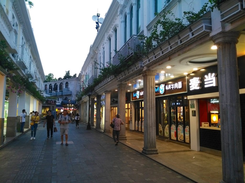 Mittlerweile war es schon früher Abend und ich hatte seit dem Frühstück nichts mehr gegessen. Daher bin ich von der Uferpromenade in das Einkaufsviertel von Gulangyu gelaufen, um dort nach einem Restaurant zu suchen. Ich habe am Ende auch eins gefunden, allerdings war ich mit meinem Essen – einer Suppe – eher weniger zufrieden. Gut, dass ich dort außer einem Drink nichts Weiteres bestellt hatte.