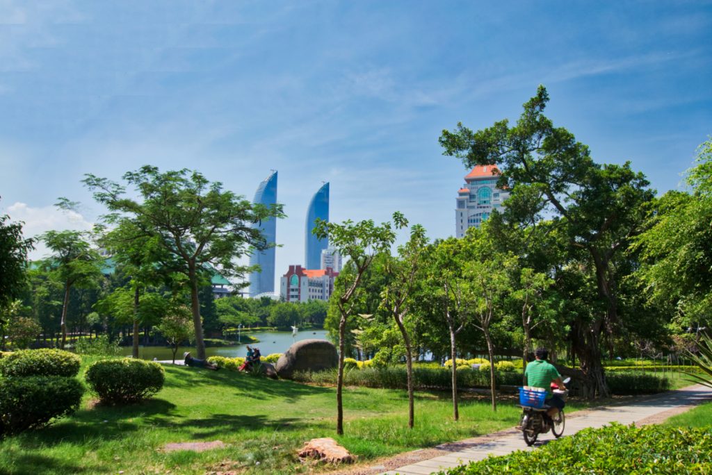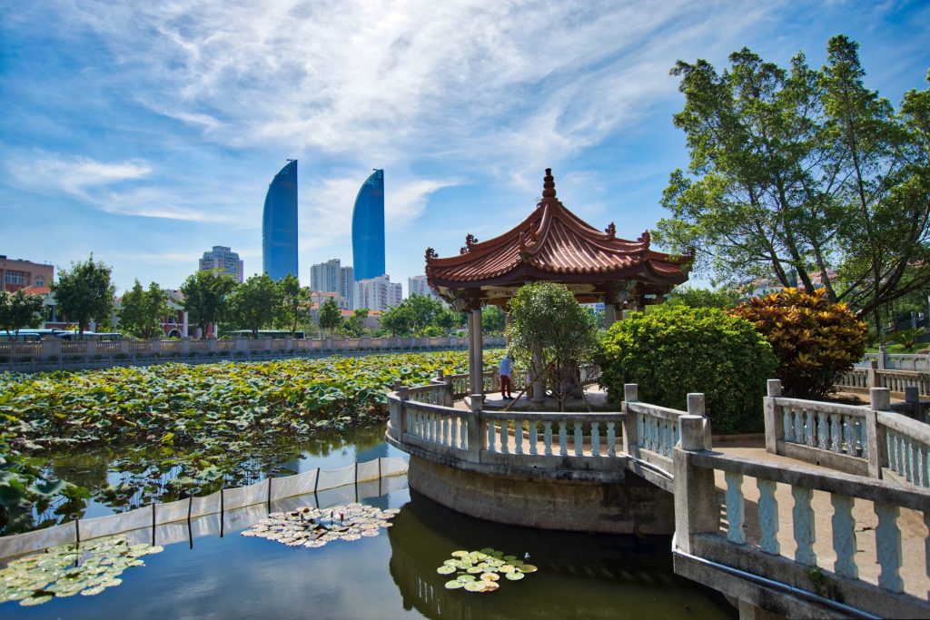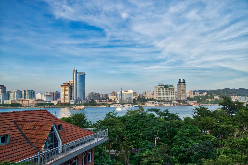 Anstatt sofort die ersten Sehenswürdigkeiten anzusteuern, bin ich zunächst ein Stück der Uferpromenade gefolgt. Hier war ich quasi allein. Von der Uferpromenade hatte man zudem einen tollen Ausblick zurück in Richtung Xiamen.