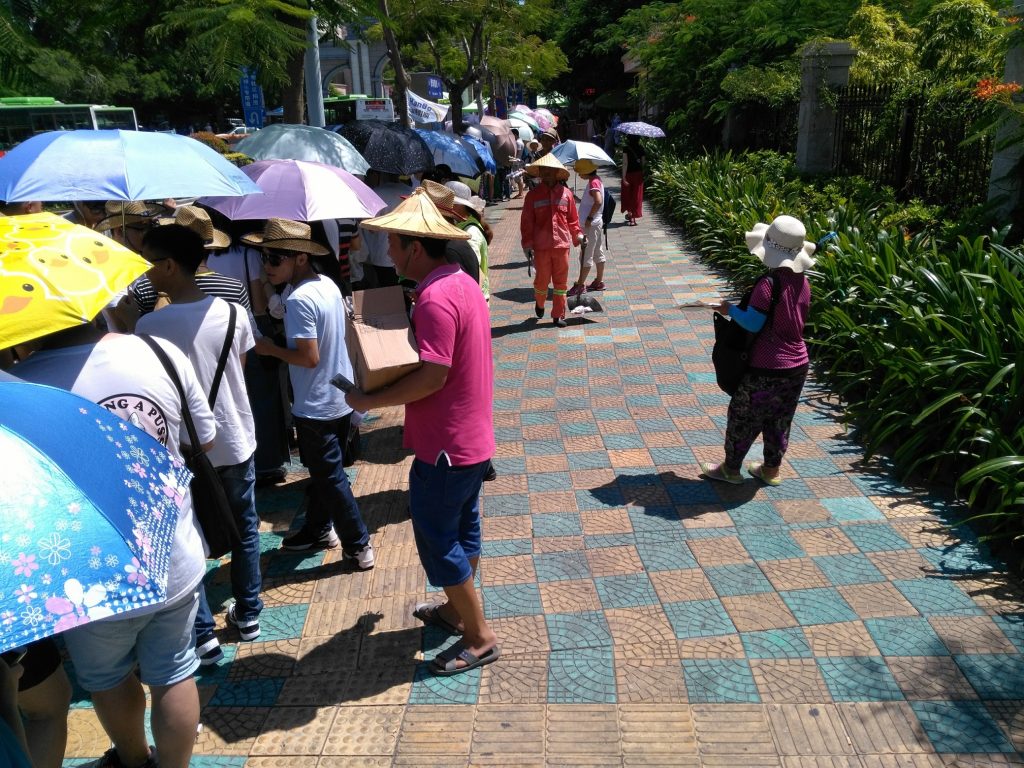 Auf Gulangyu angekommen, habe ich zunächst nach der Touristeninformation gesucht und sie zum Glück auch relativ schnell gefunden. Wenn man in Nei Cuo Ao ankommt, muss man sich einfach sofort nach links wenden und ein Stück am Ufer entlang laufen, dann kann man die Touristeninformation nicht verfehlen. In der Touristeninformation hat mir eine sehr hilfsbereite Mitarbeiterin eine kostenlose Karte von Gulangyu gegeben und mir auch noch erklärt, dass ich mit meinem Ticket für die Fähre auch von der anderen Anlegestelle wieder zurück nach Xiamen fahren kann, was ich bis dahin gehofft, aber nicht sicher gewusst hatte.